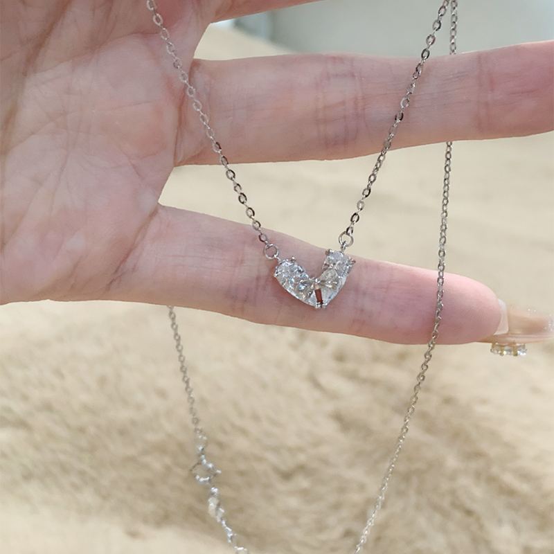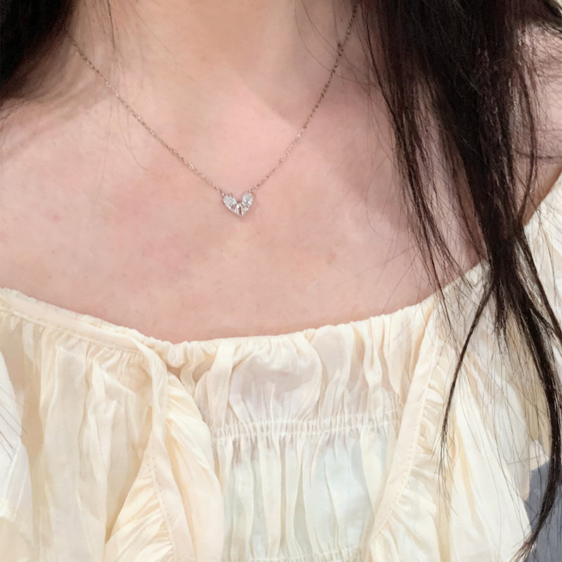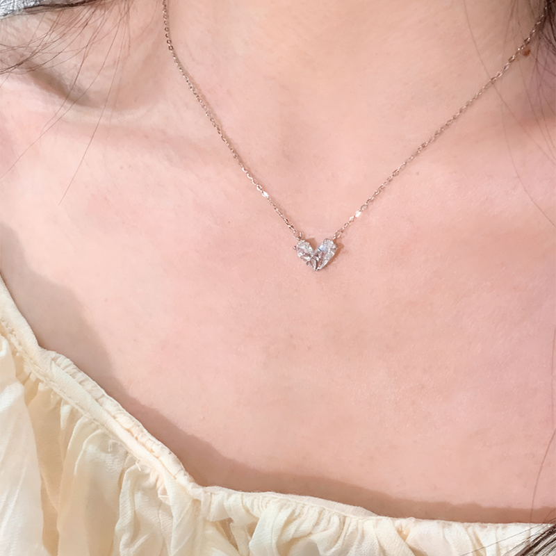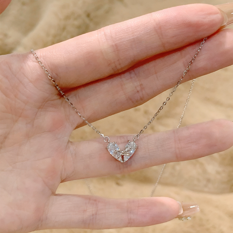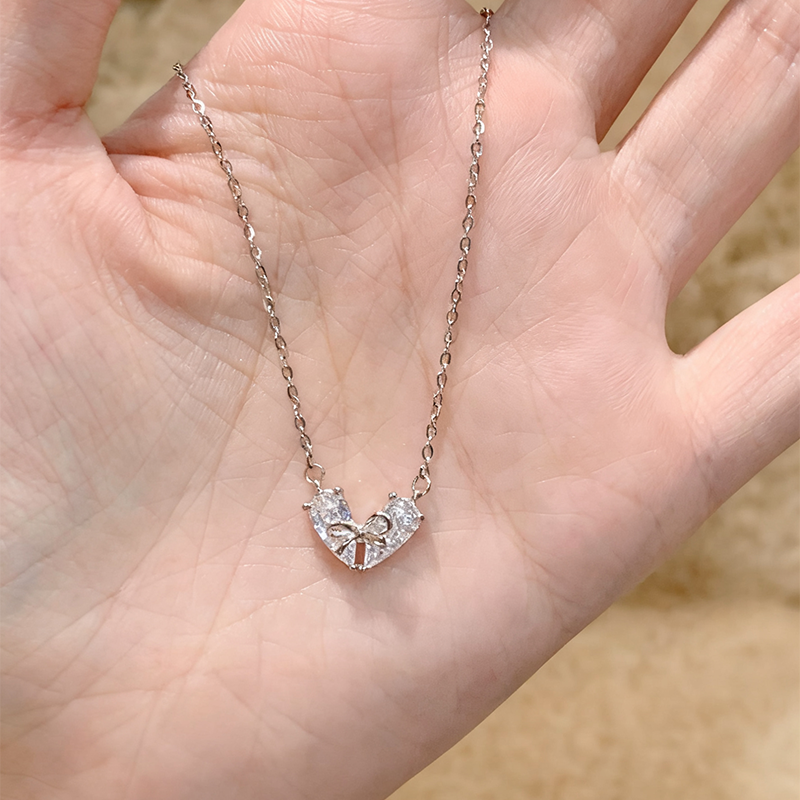 Lunarきらめくリボンハートシルバーネックレス
