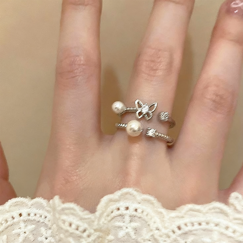 ZJ胡蝶の珠絡みリング 2点セット