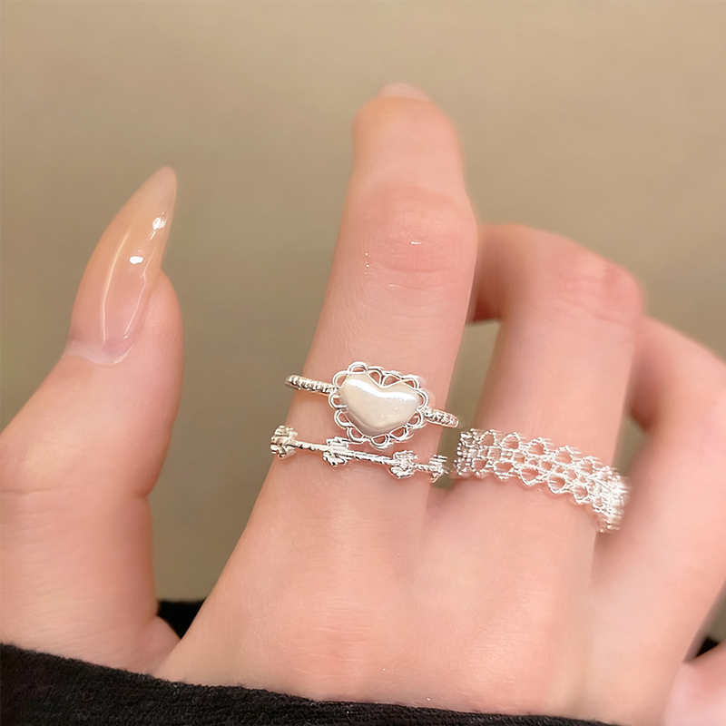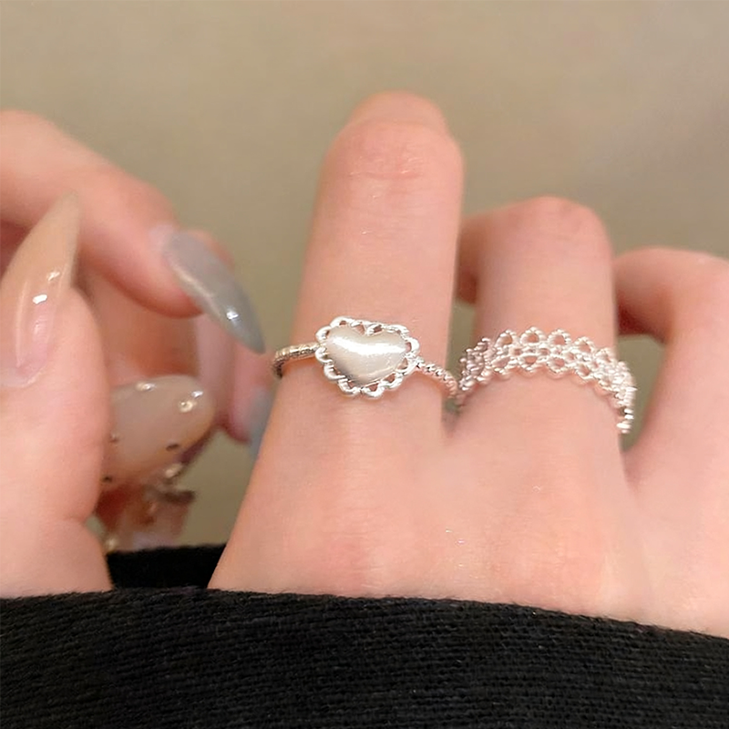 ZJ透かし彫りの愛心リング 3点セット