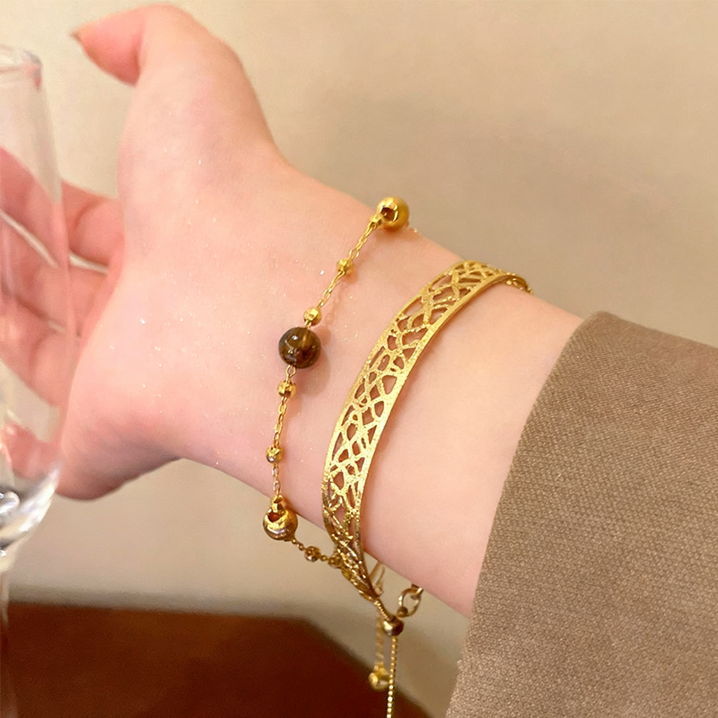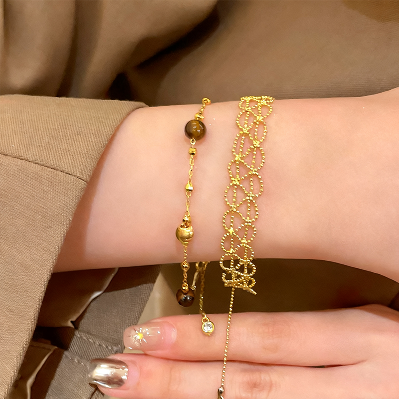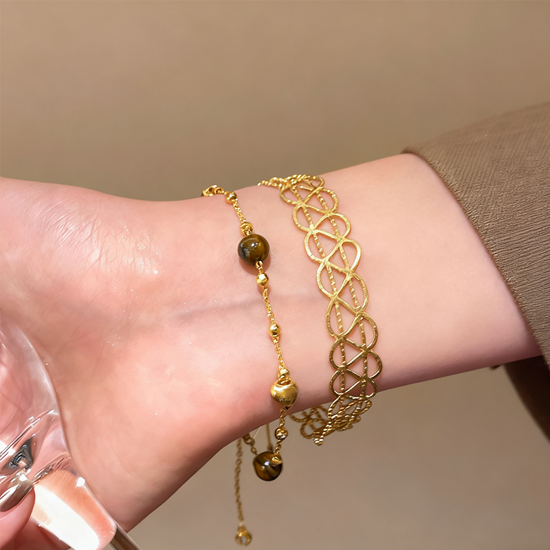 ZJ金色のレース虎目石ブレスレット 2点セット