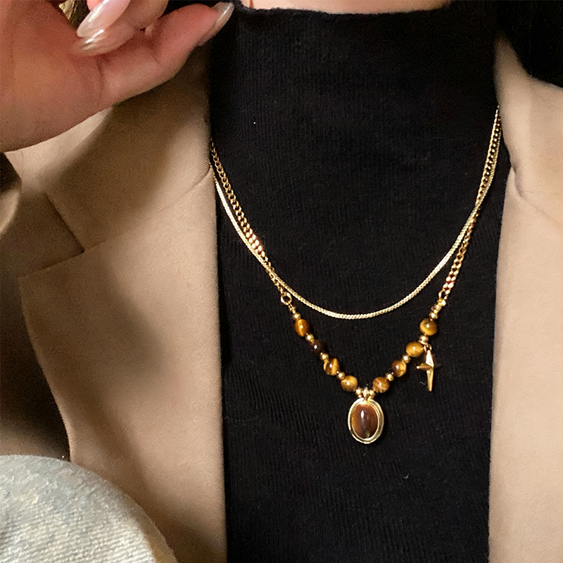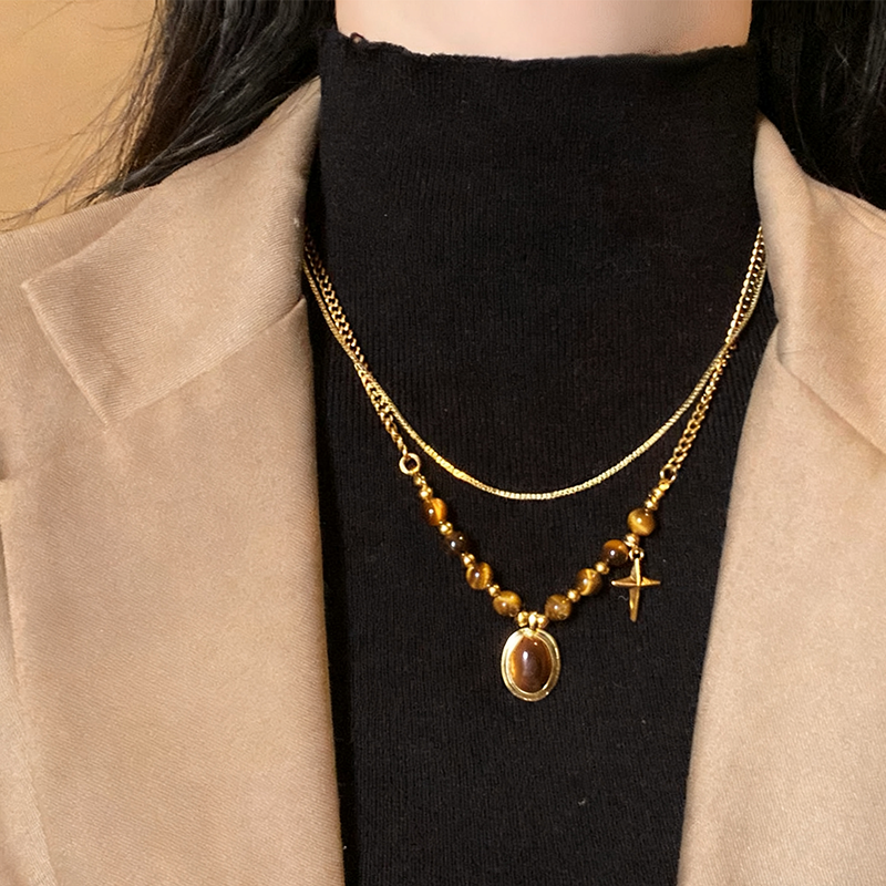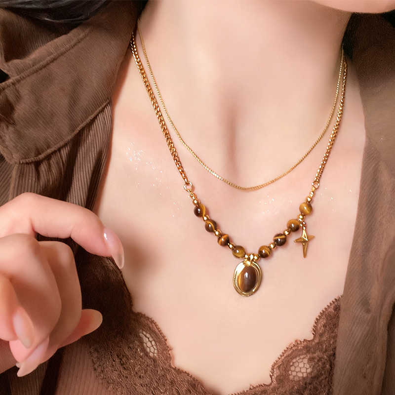 ZJ四芒星の虎目石ネックレス