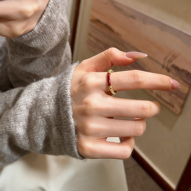 suzyacc深紅のエナメル スワロフスキーリング