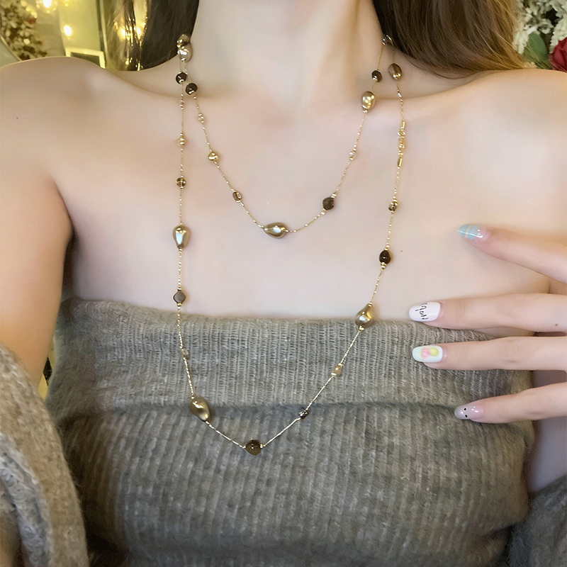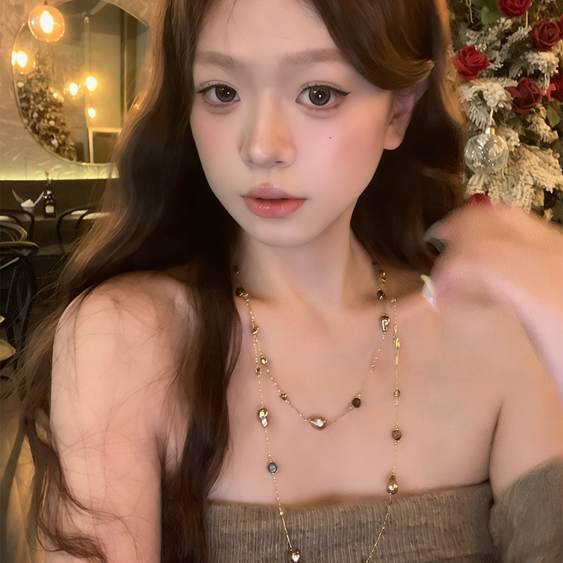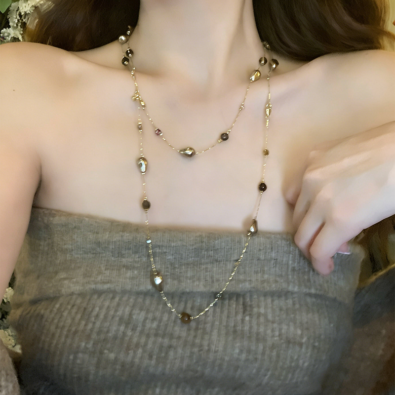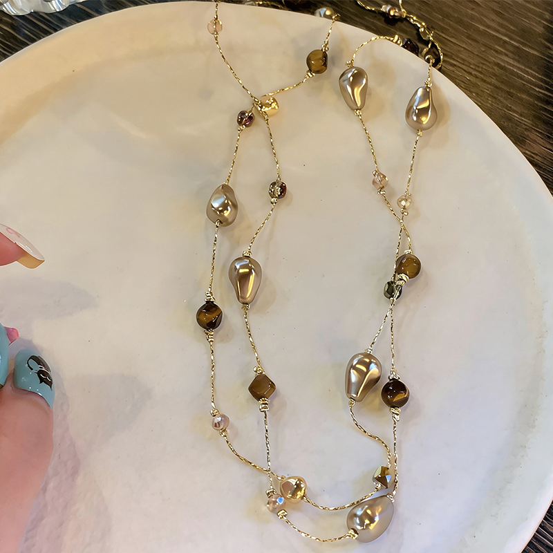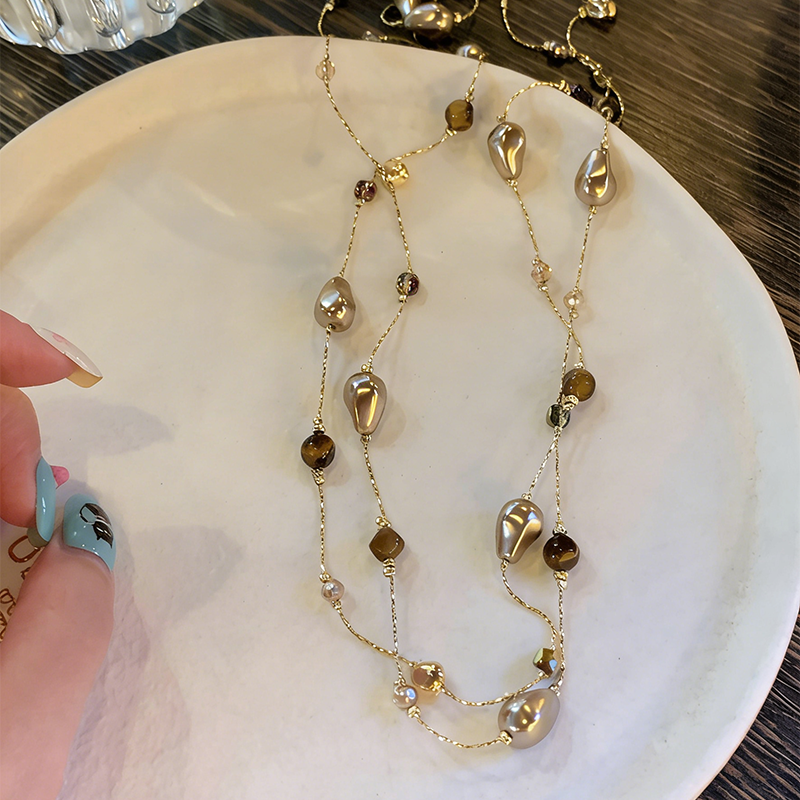 tomr虎目石ロングレイヤードネックレス