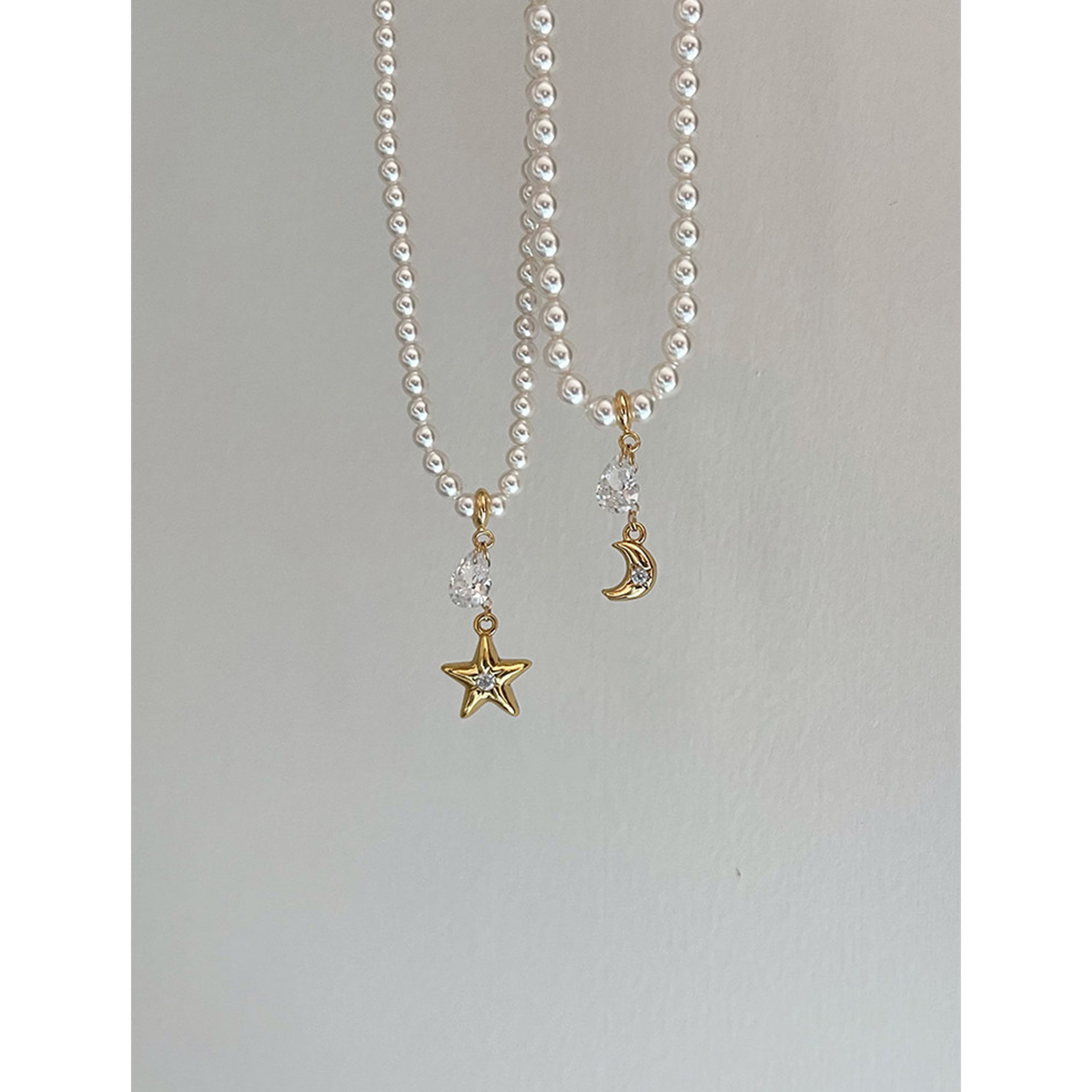 ★星か月のモチーフに、人工ダイヤモンドをあしらったペンダントトップ。チェーンにつけてお使いいただくタイプです。