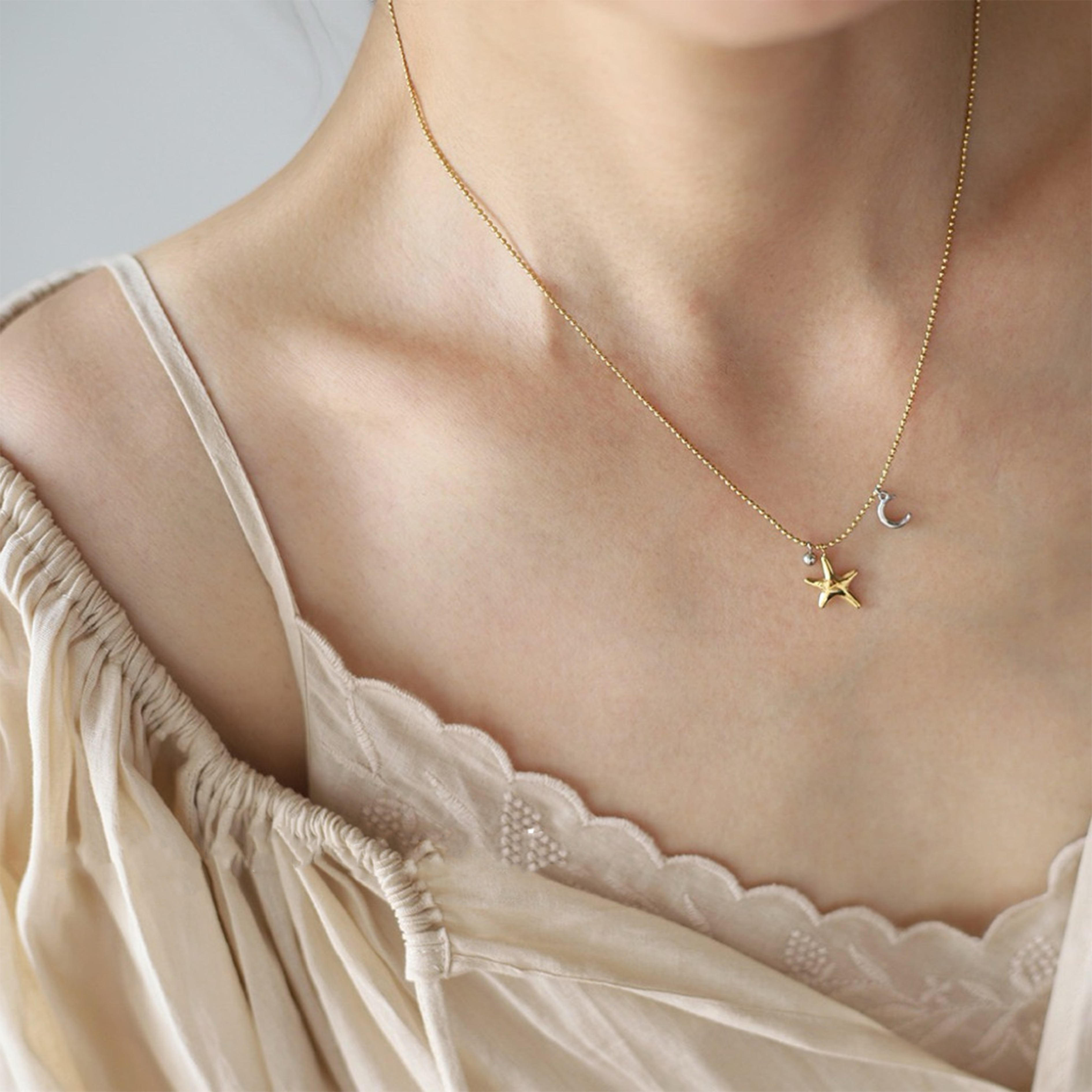 bass春の星月カラーブロックネックレス