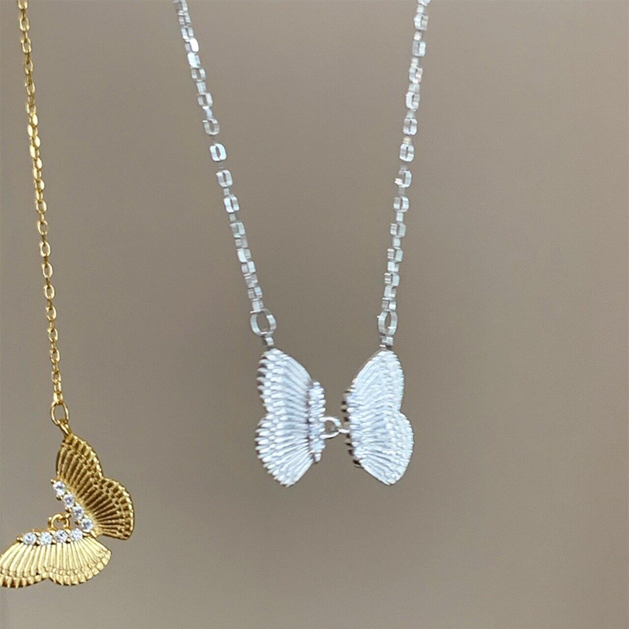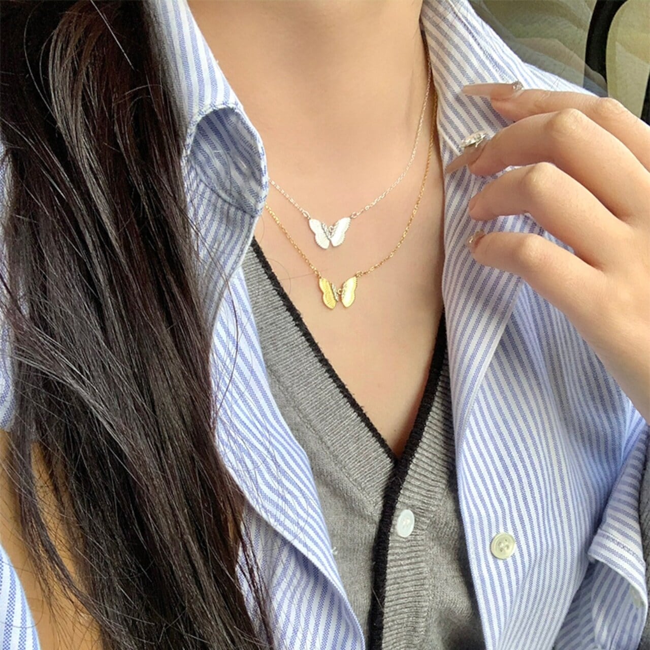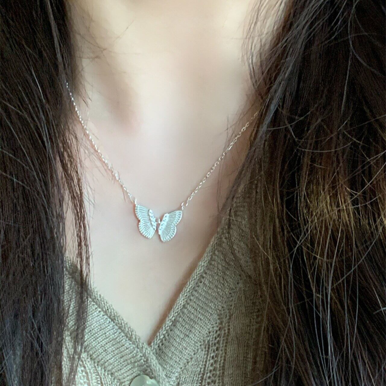 20pastシルバーひらひら舞う蝶ネックレス 2s