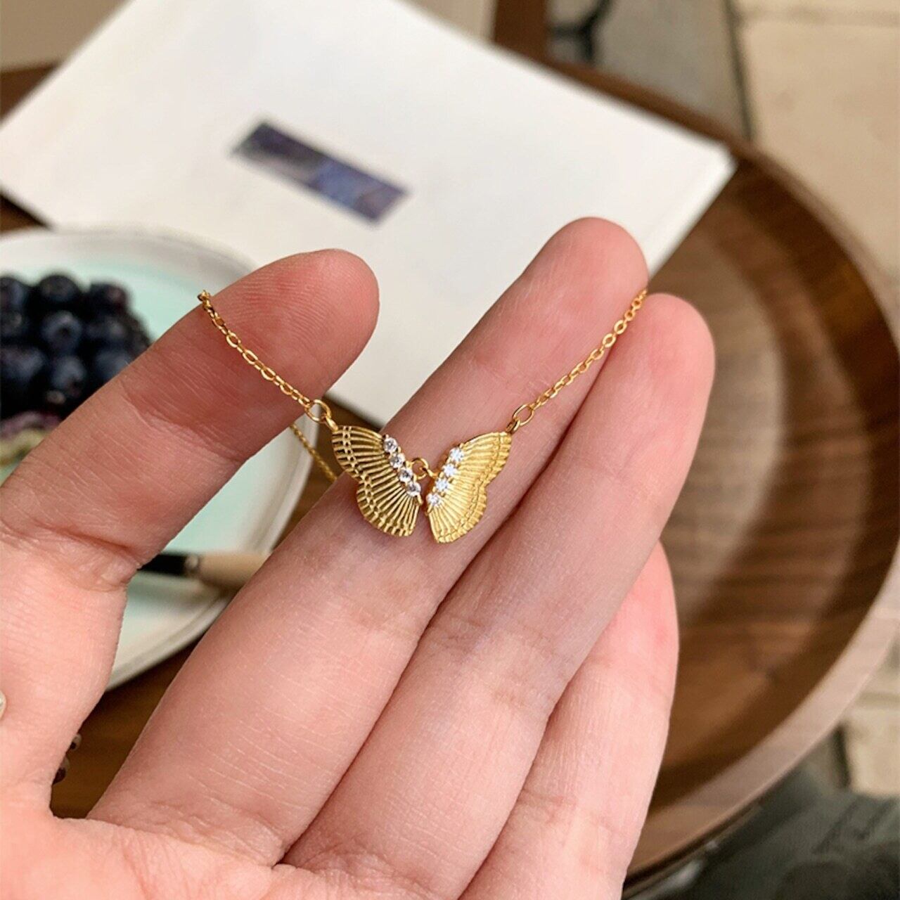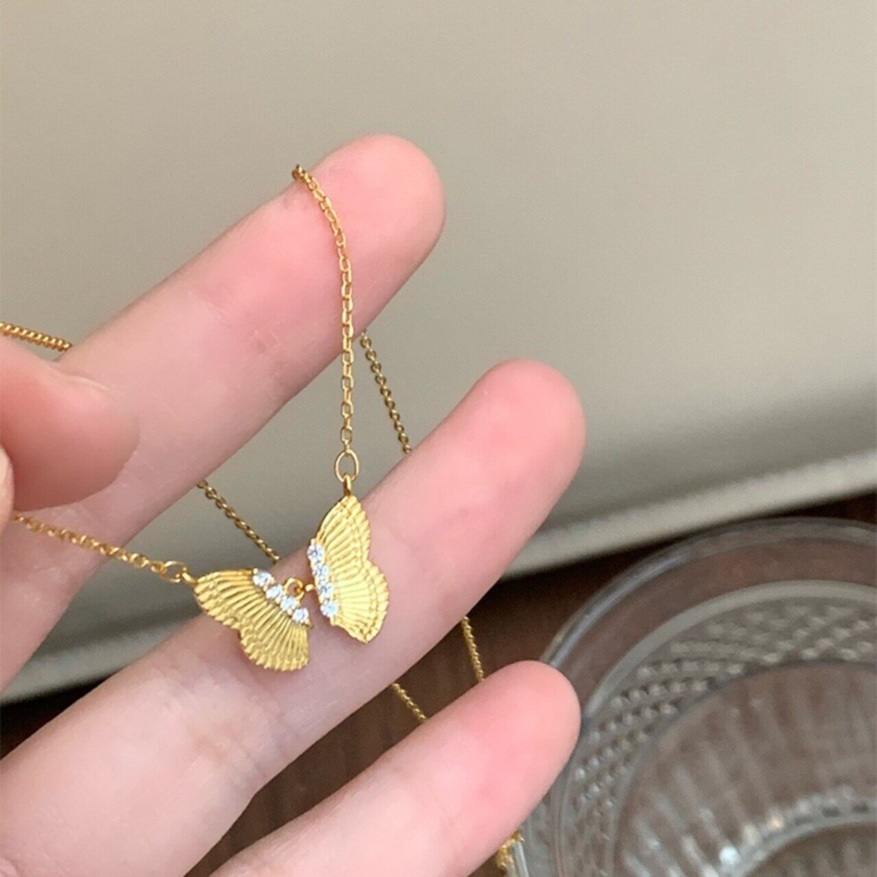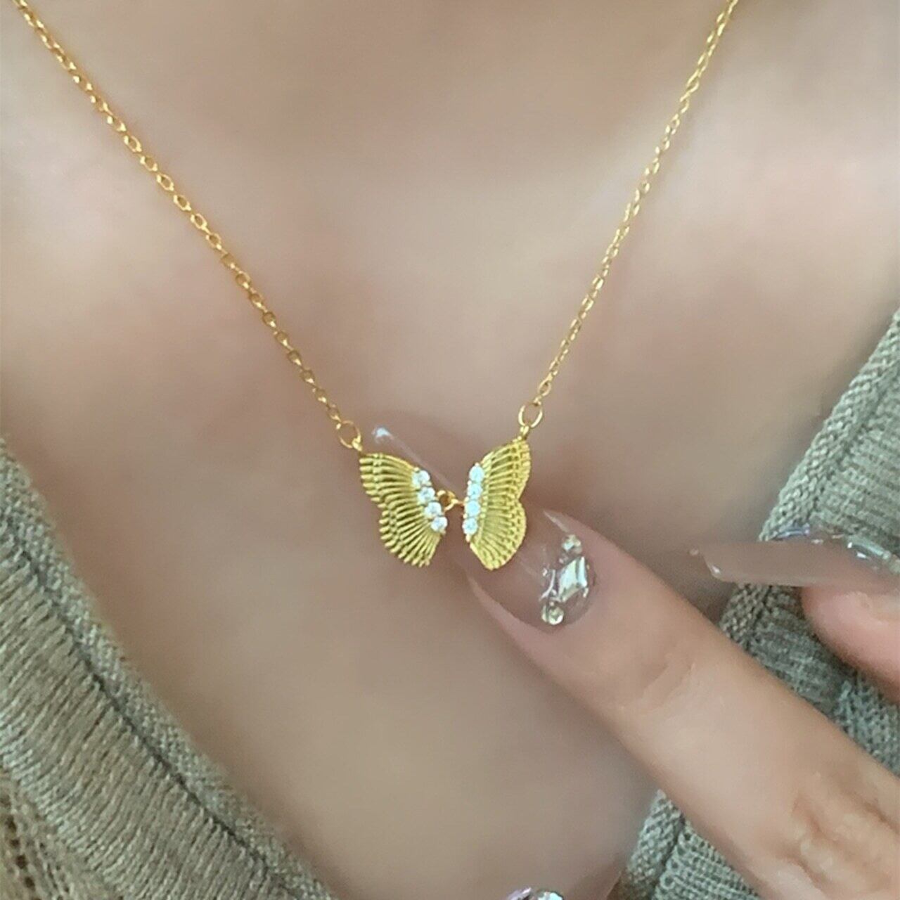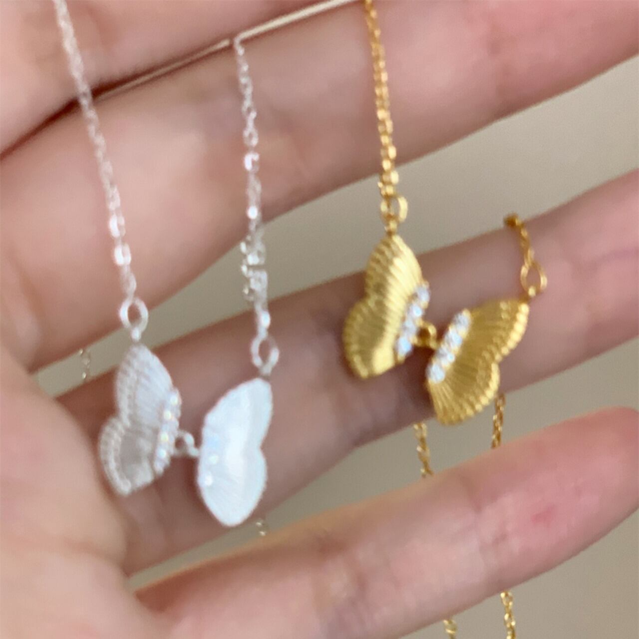 20pastシルバーひらひら舞う蝶ネックレス 2s
