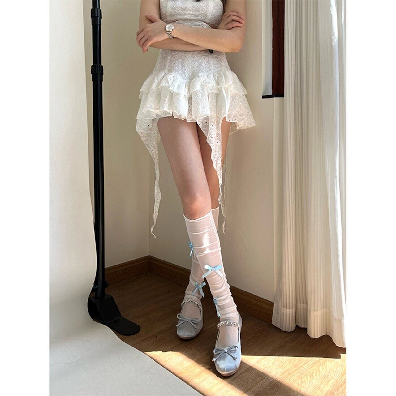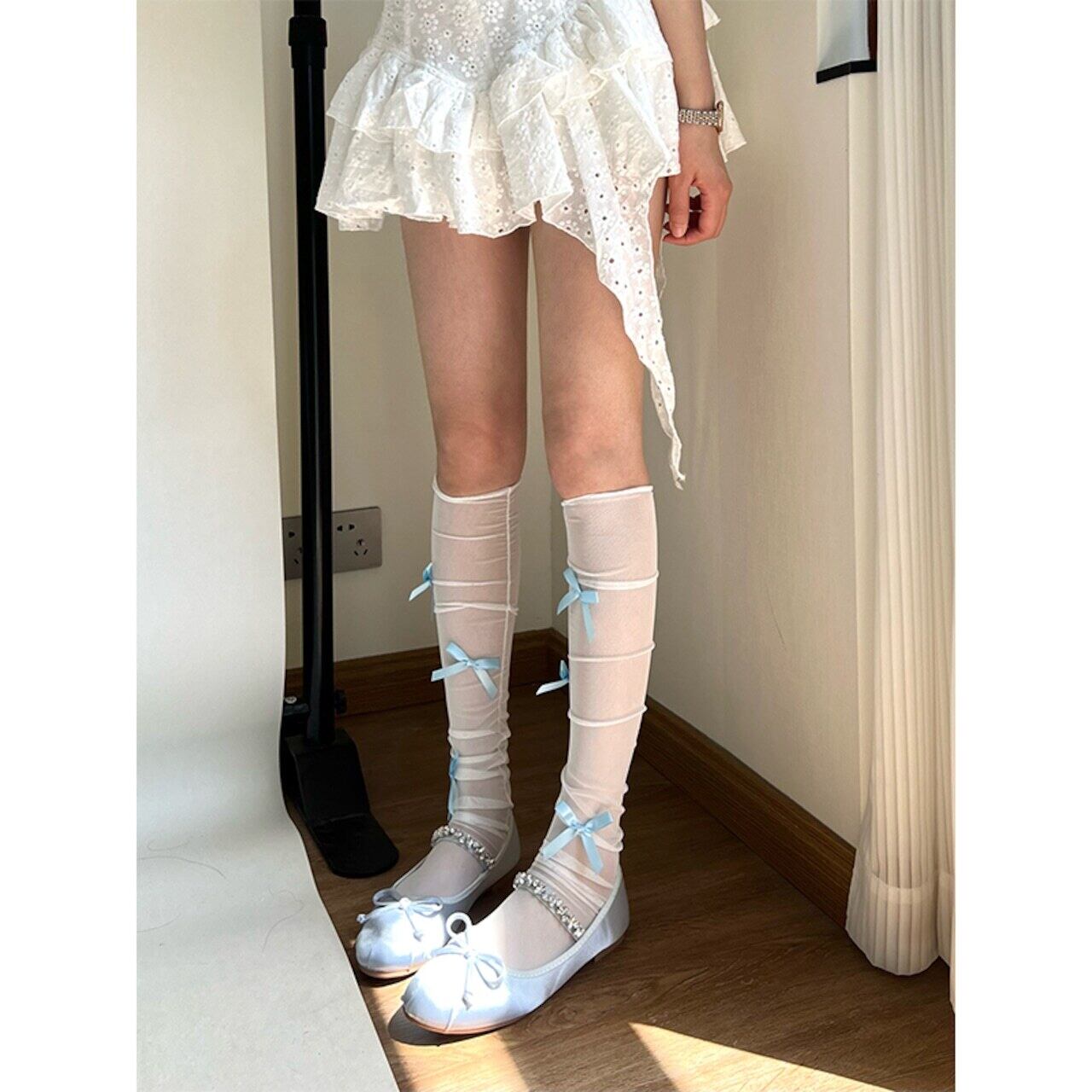 laopai韓国のバレエリボン&真珠ソックス 3s