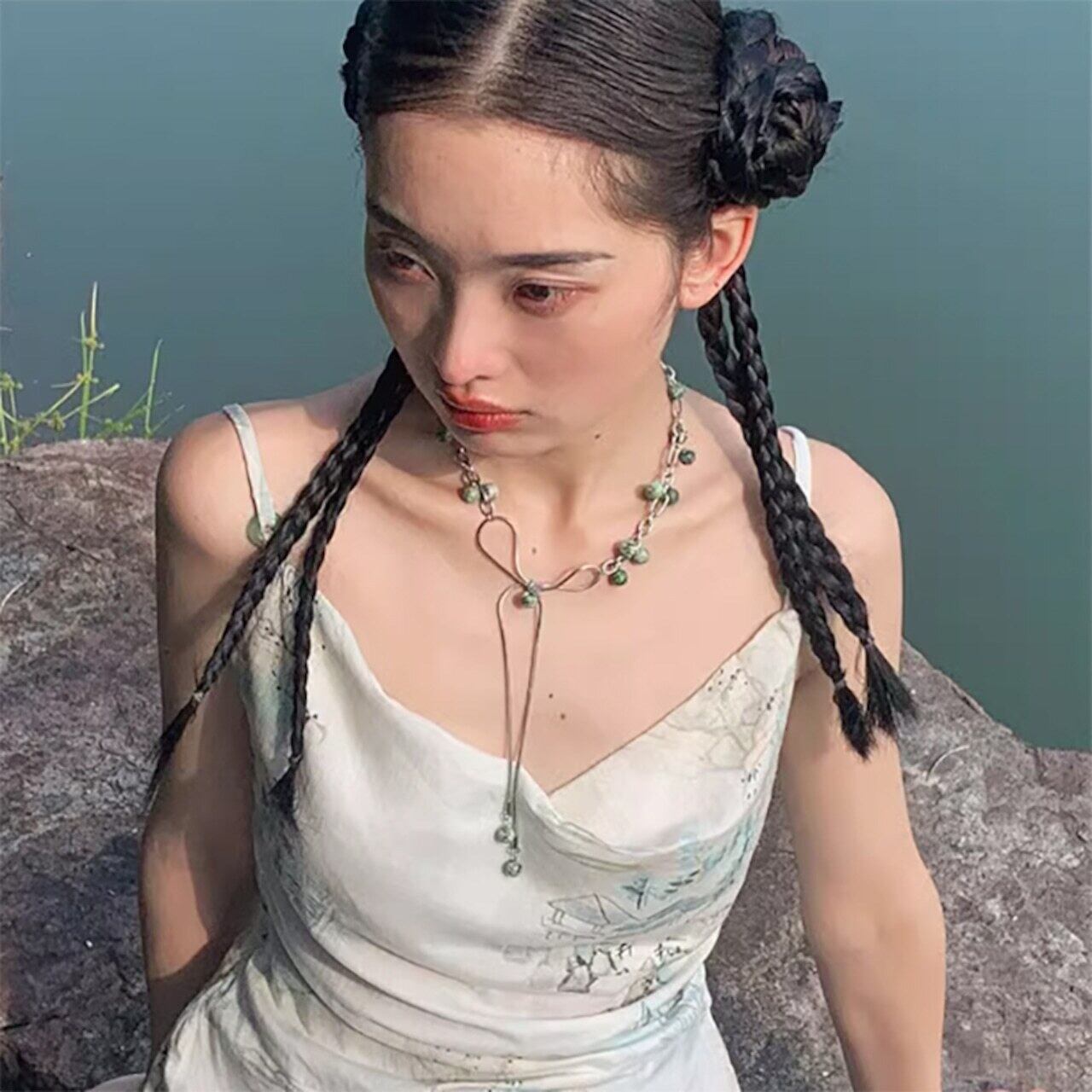 Afterpartyレトロなみど緑玉石リボンネックレス