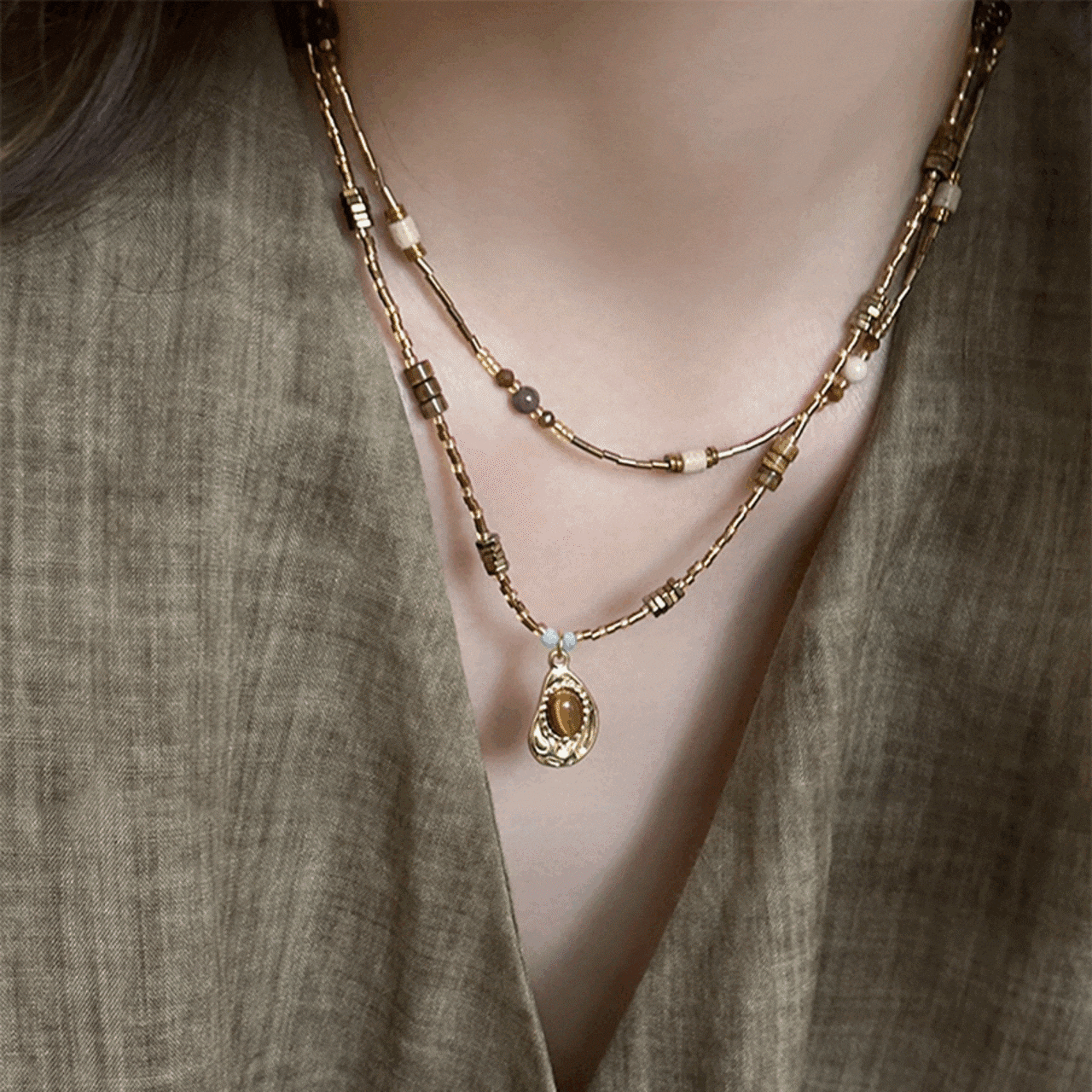 XIAN虎目石のレトロネックレス 3s