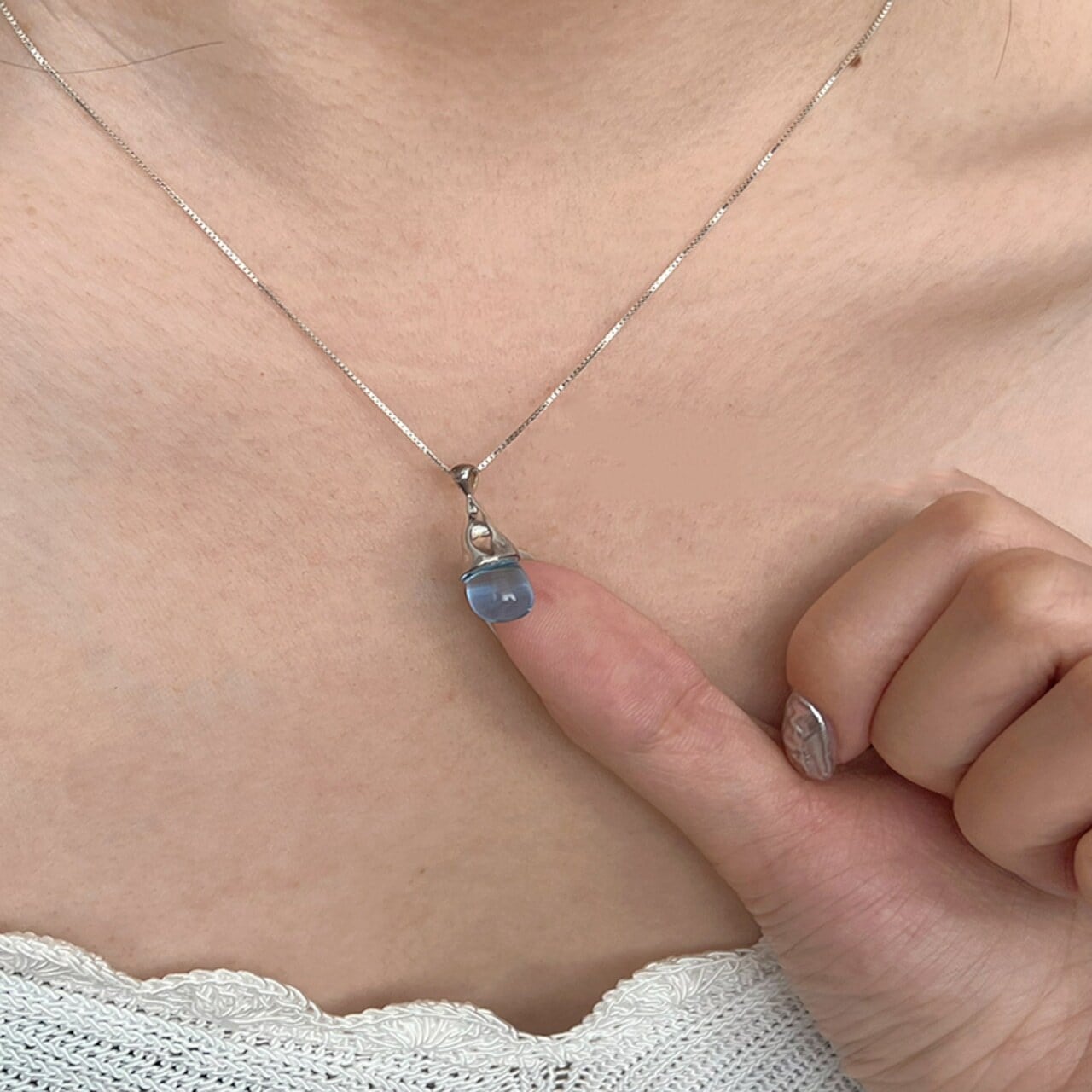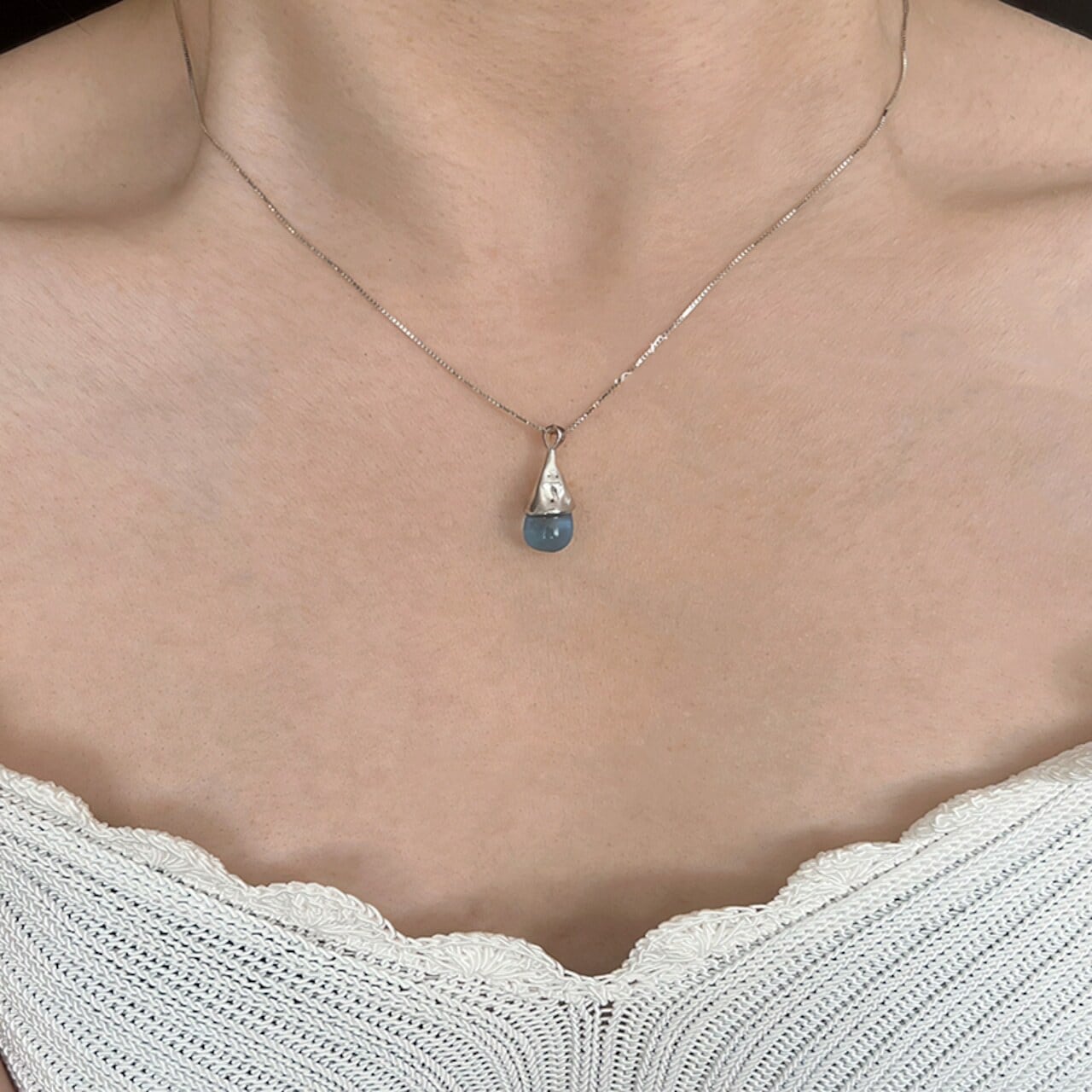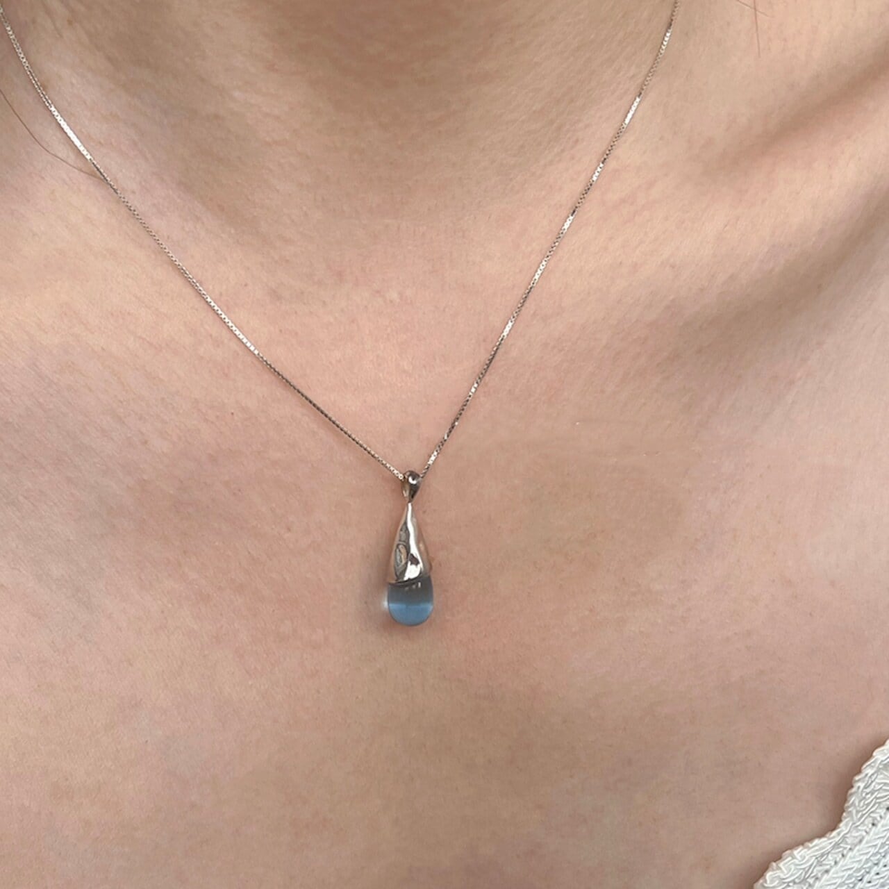 yione猫目の石水滴のネックレス