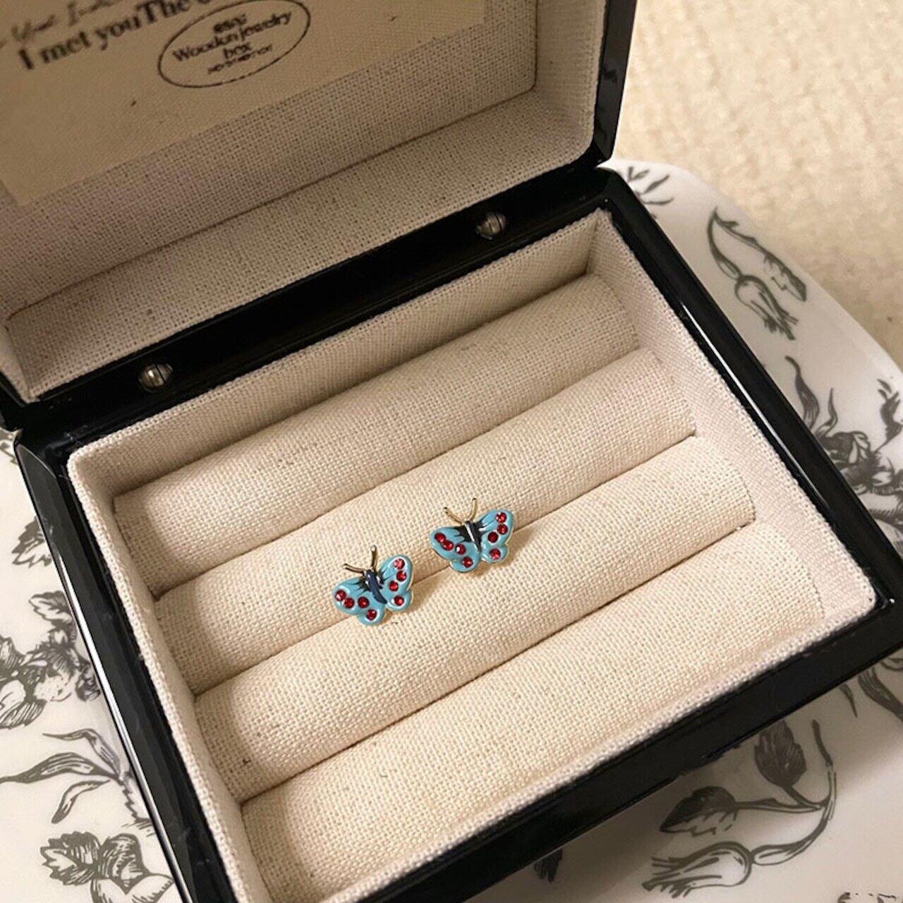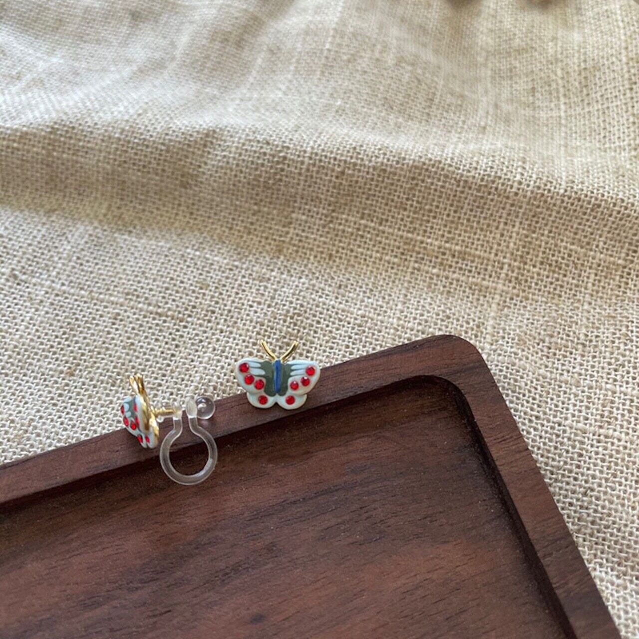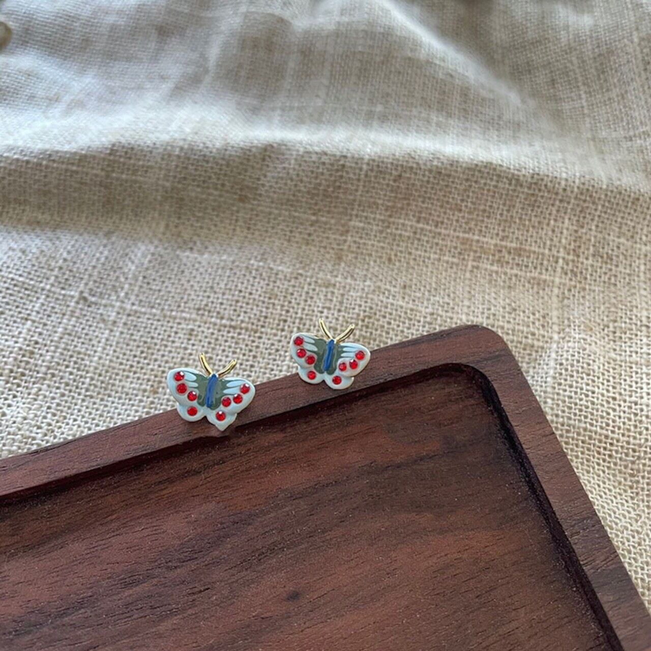 Meetagain滴る釉油絵の蝶スタッドピアス