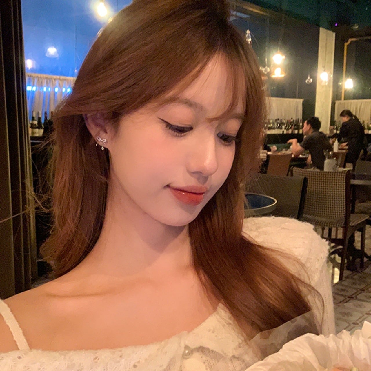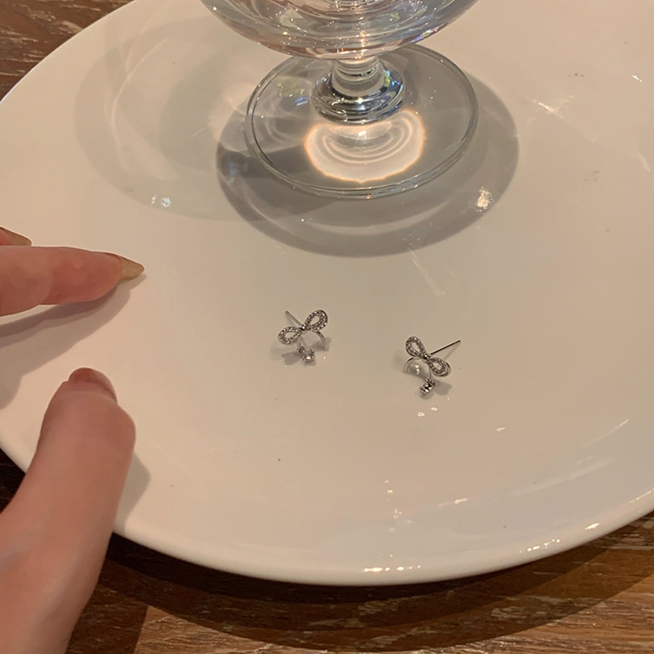 Peachteaジルコンとリボンピアス★アレルギー対応