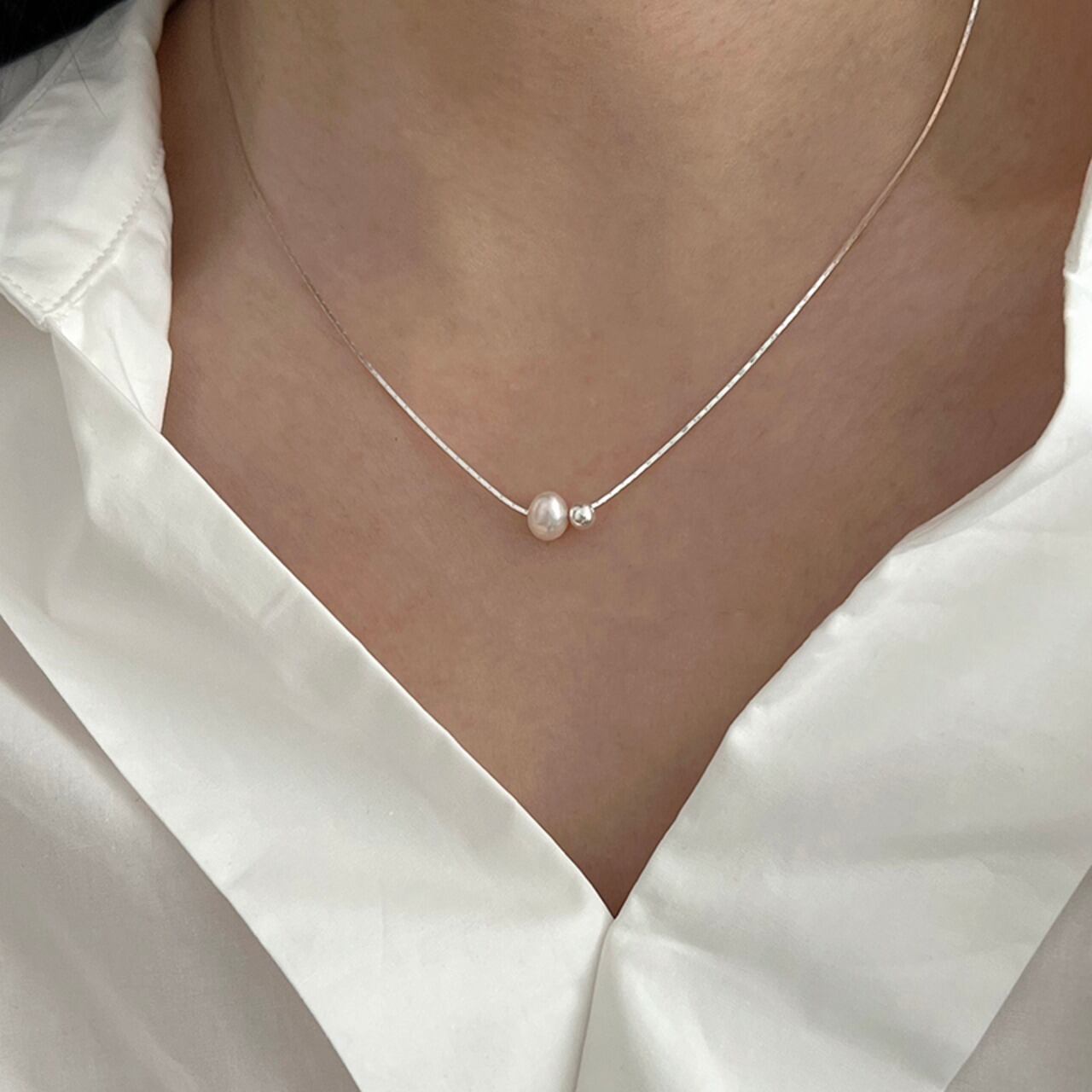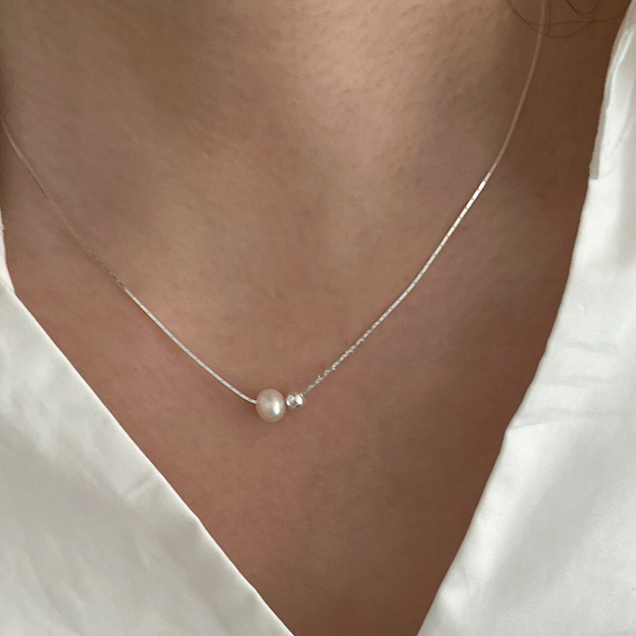 yioneシルバービーズパールネックレス