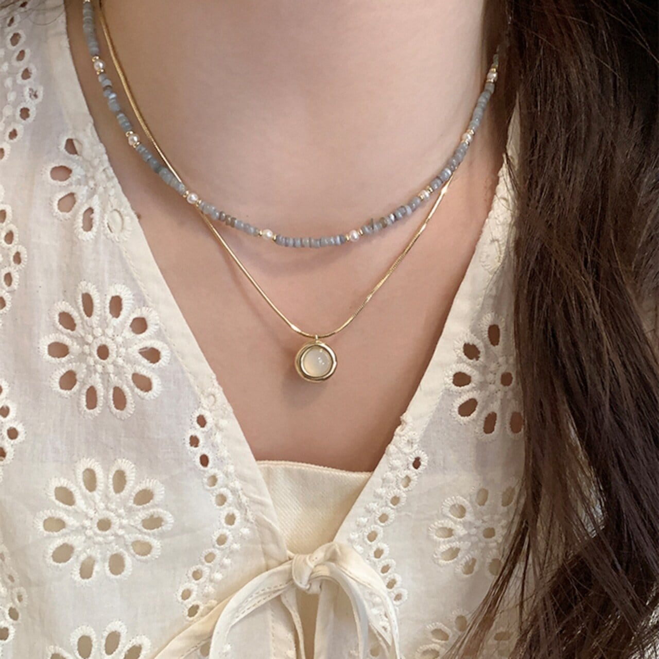 suzyacc爽やかなシーブルー天然石重ねネックレス