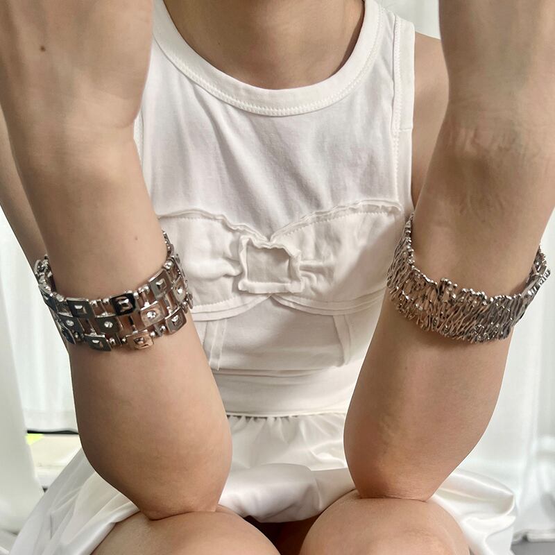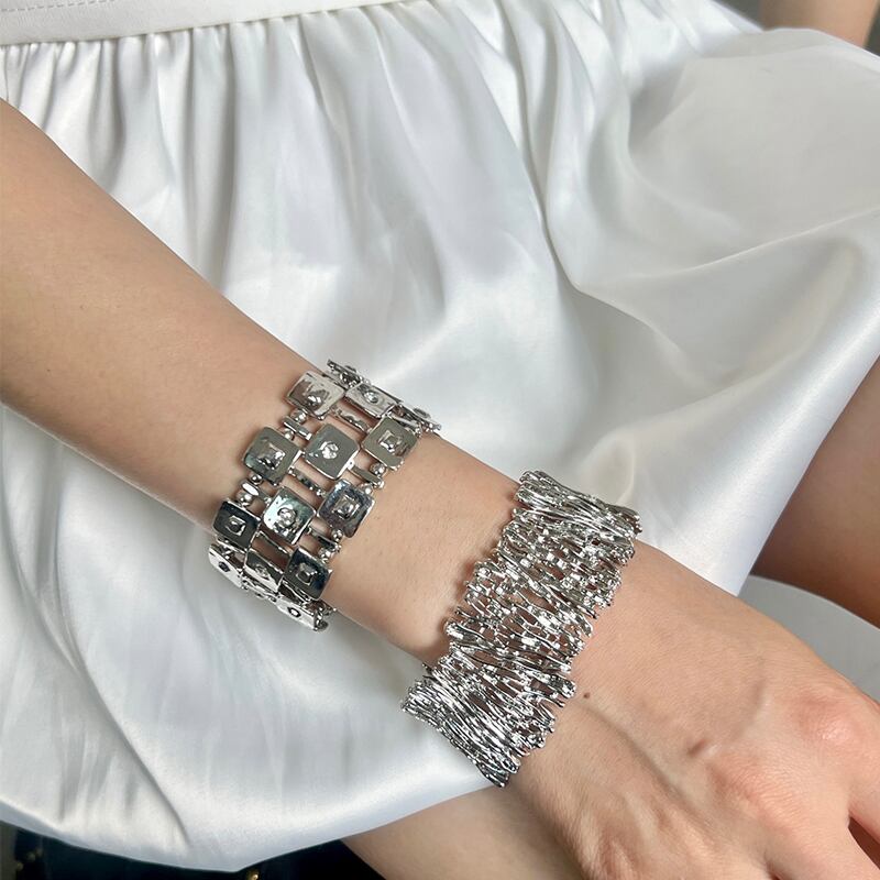 yoyo幾何学模様のストレッチラインストーンワイドブレスレット