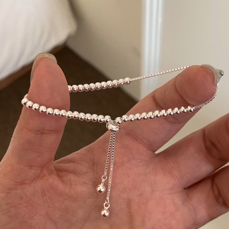 TOMRシルバー調整可能ビーズブレスレット