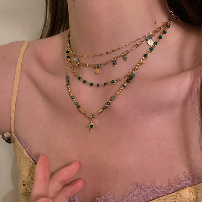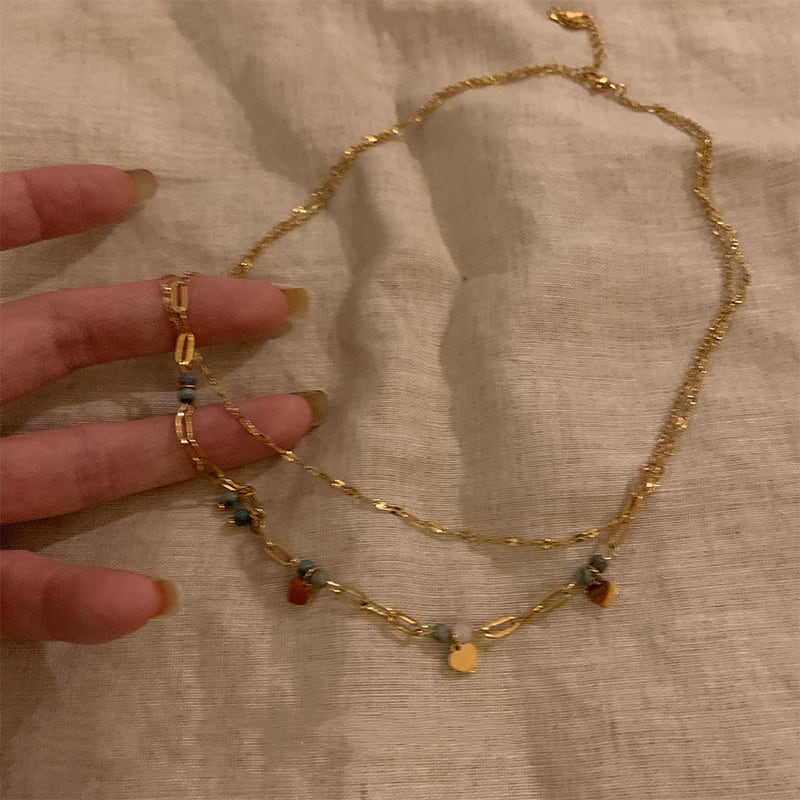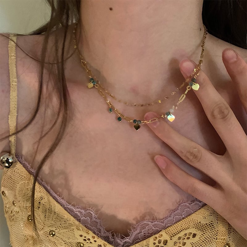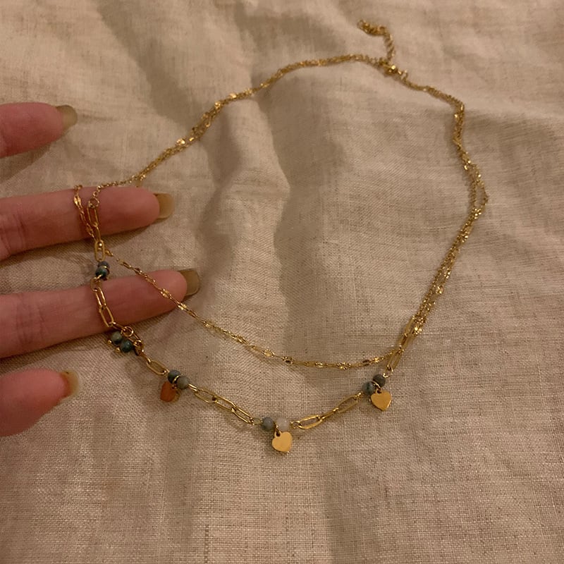 somedayif可愛いビーズ&愛心の重ねネックレス