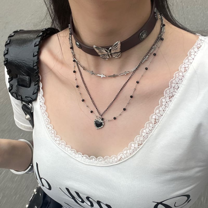 yoyoヴィンテージクロス3層重ねネックレス 2s