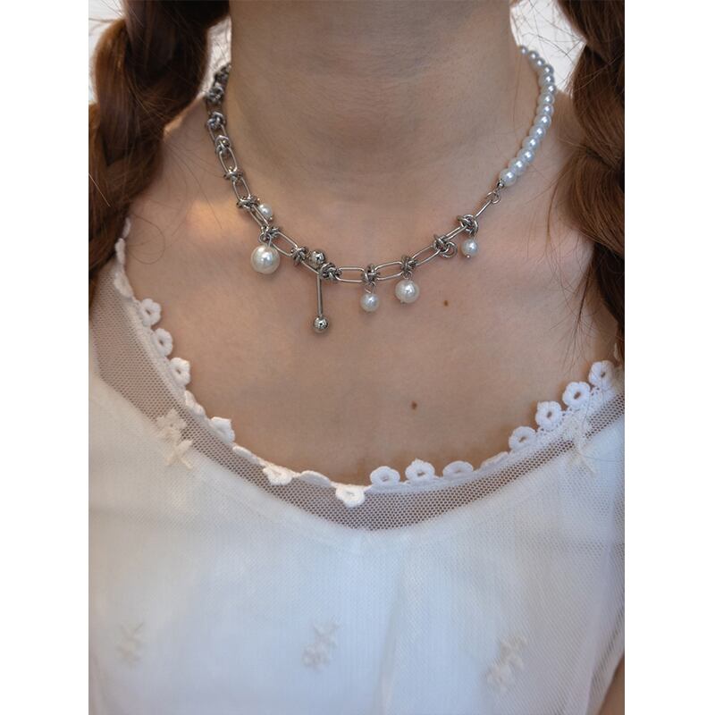 Bense韓国のパール切り替えネックレス
