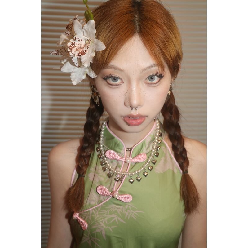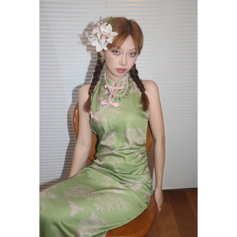 「予約販売」SWAG中華娘レトログリーン紐チャイナドレス