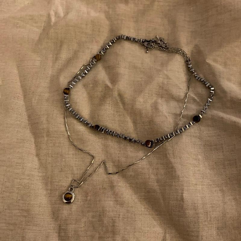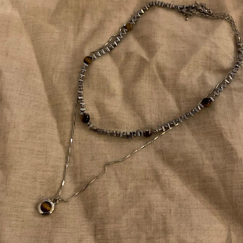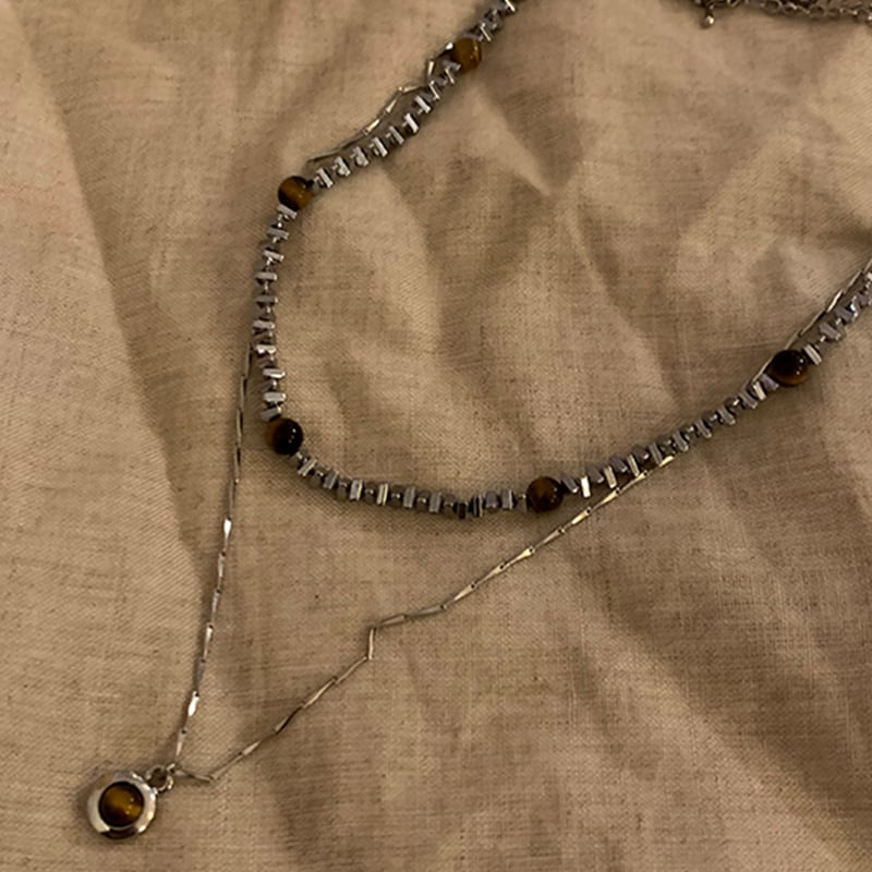Somedayifレトロ虎目石2層重ねネックレス