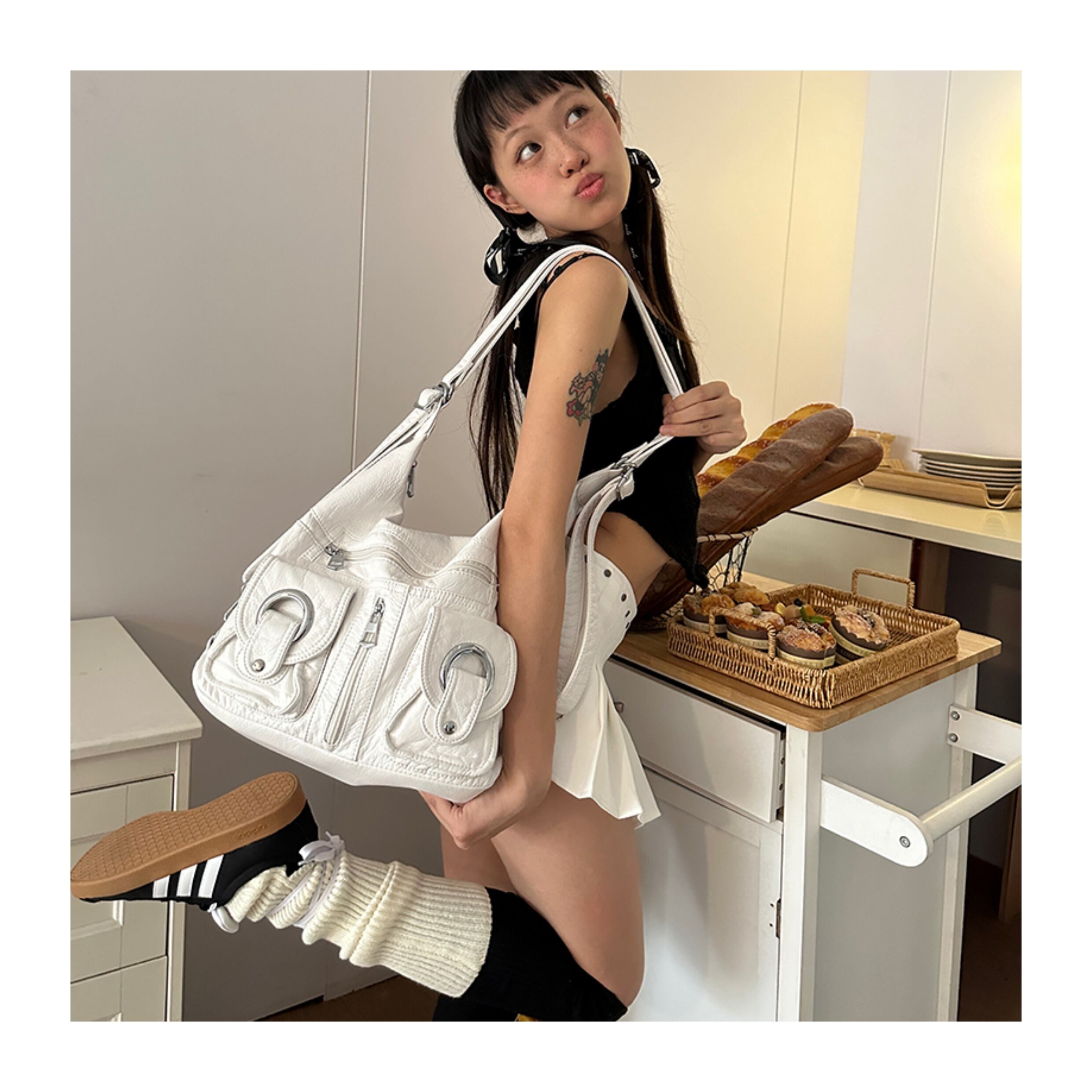 Hottieレトロy2kダブルポケット2wayショルダーバッグ