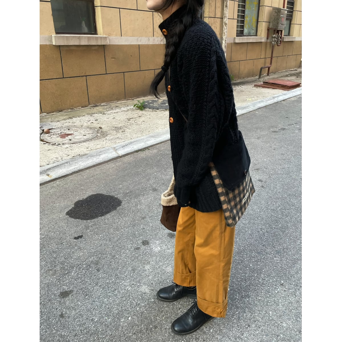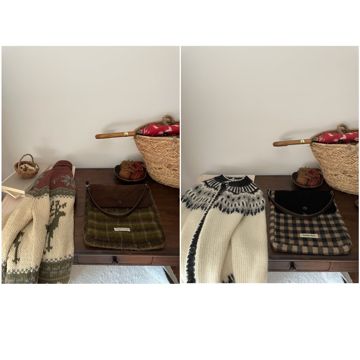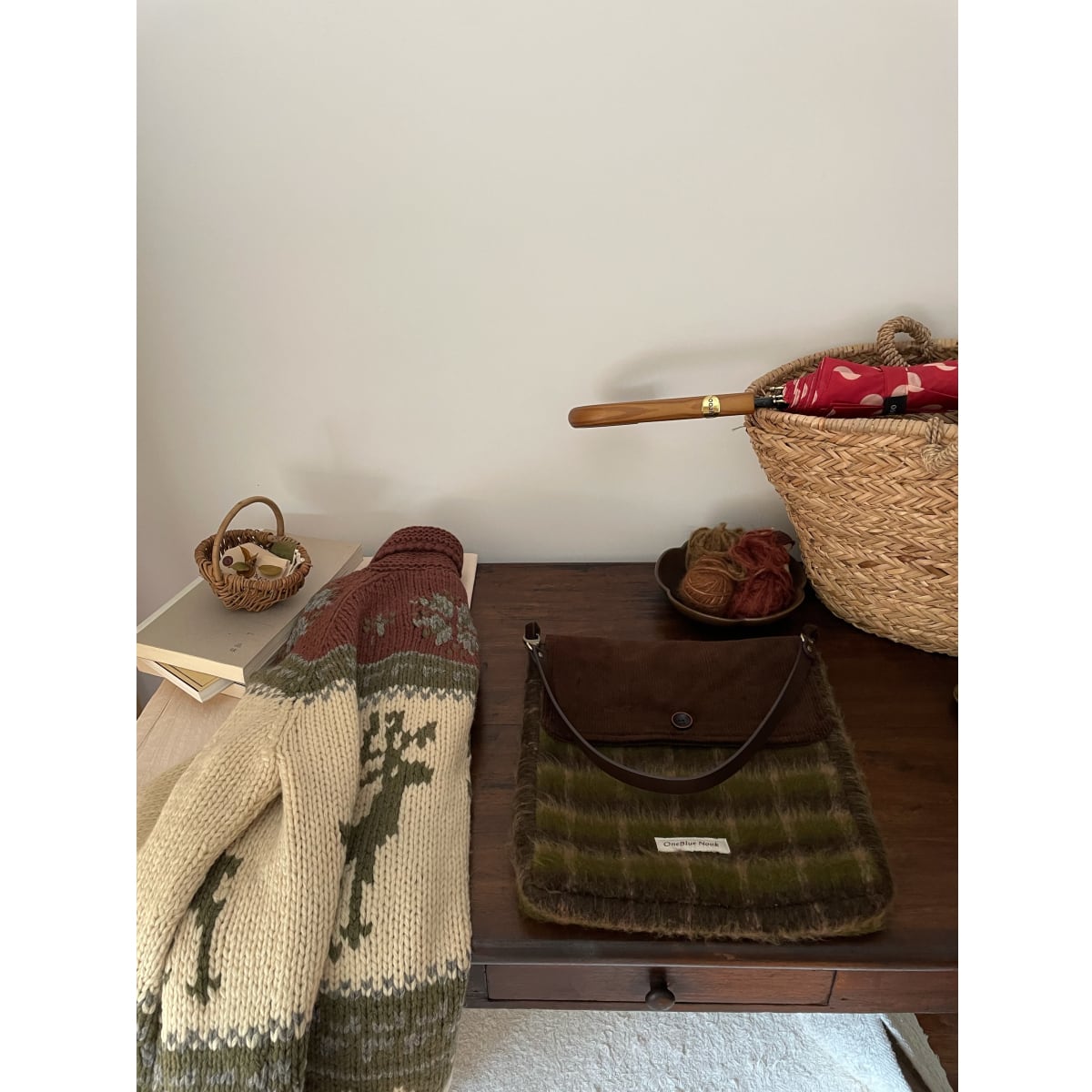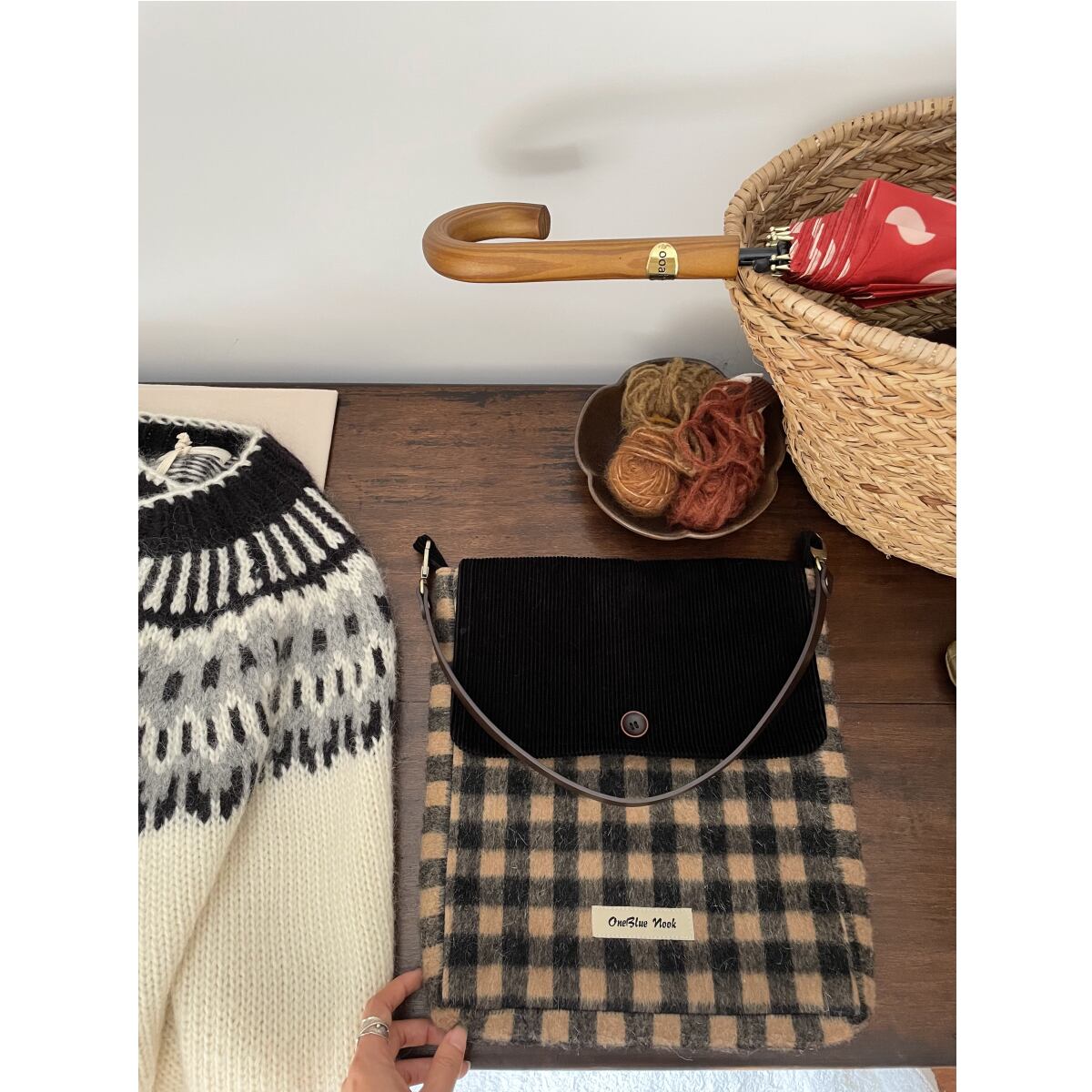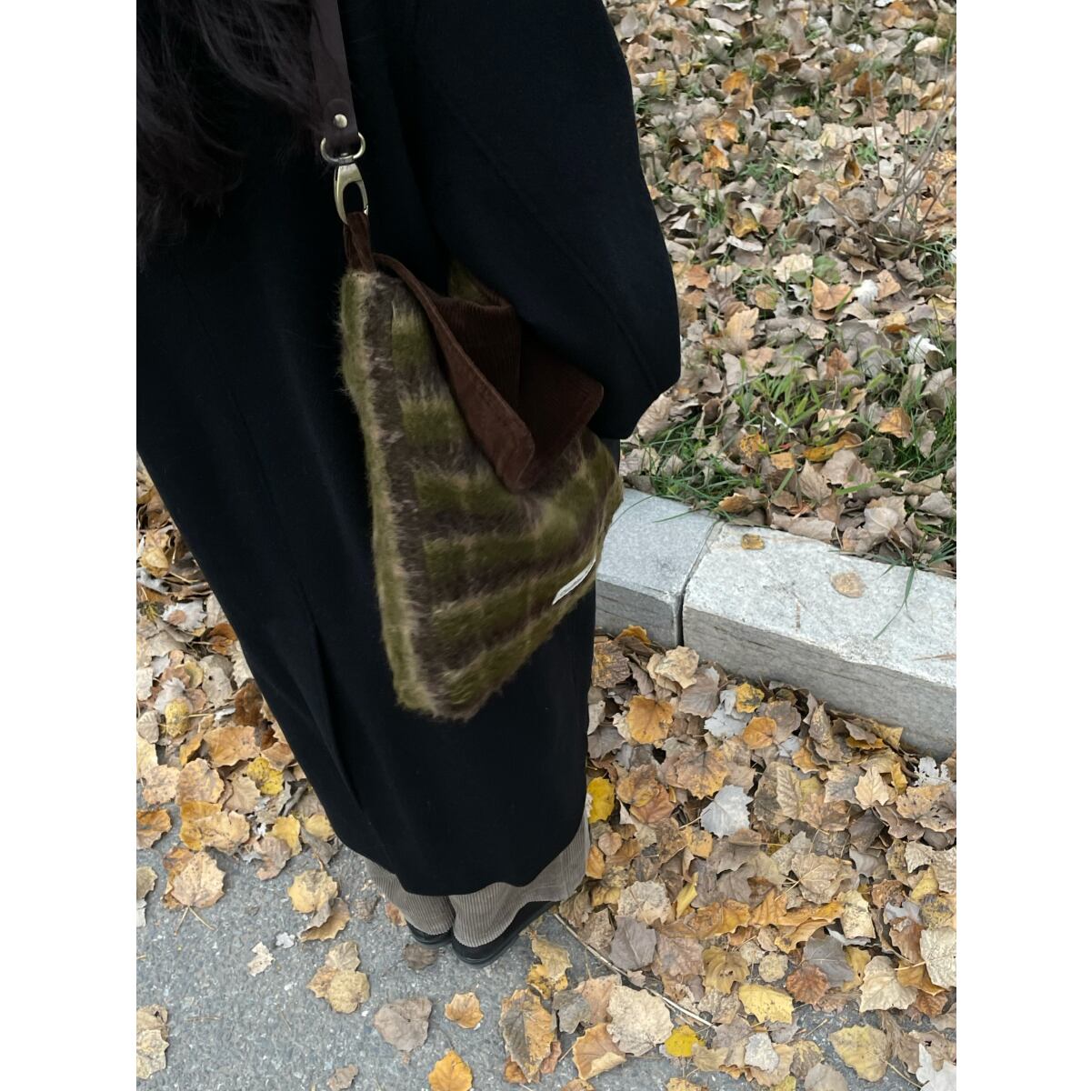 Nook苔樹皮コーデュロイ格子ショルダーバッグ 2s
