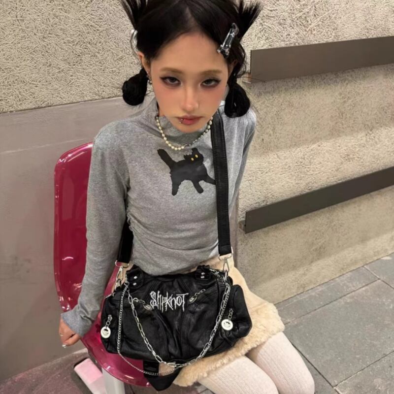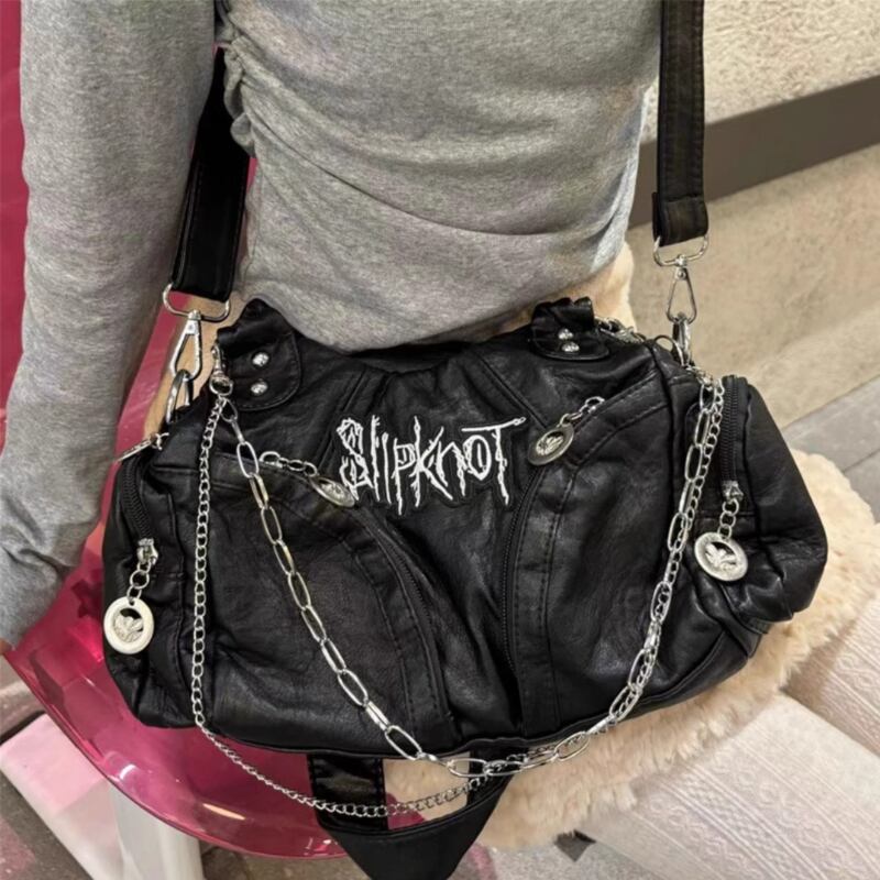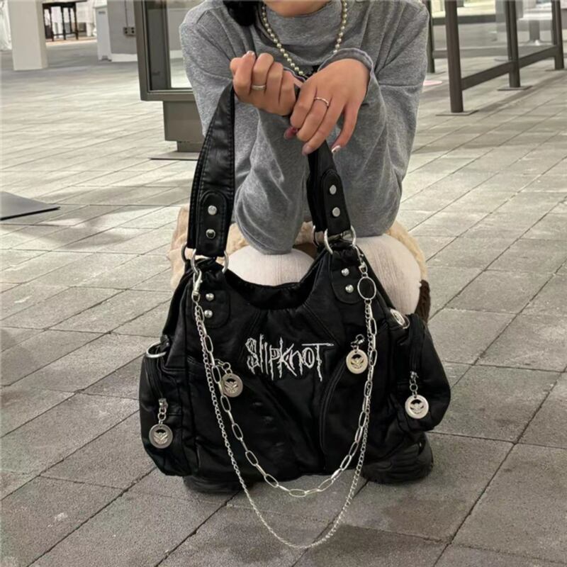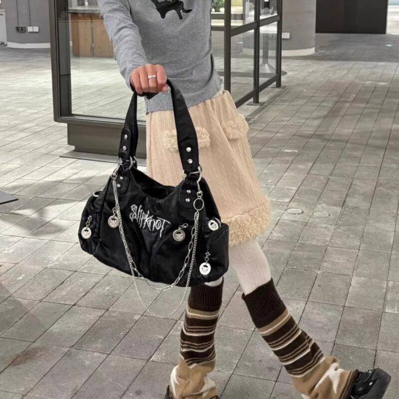 Hottie英字の黒y2kチェーンショルダーバッグ