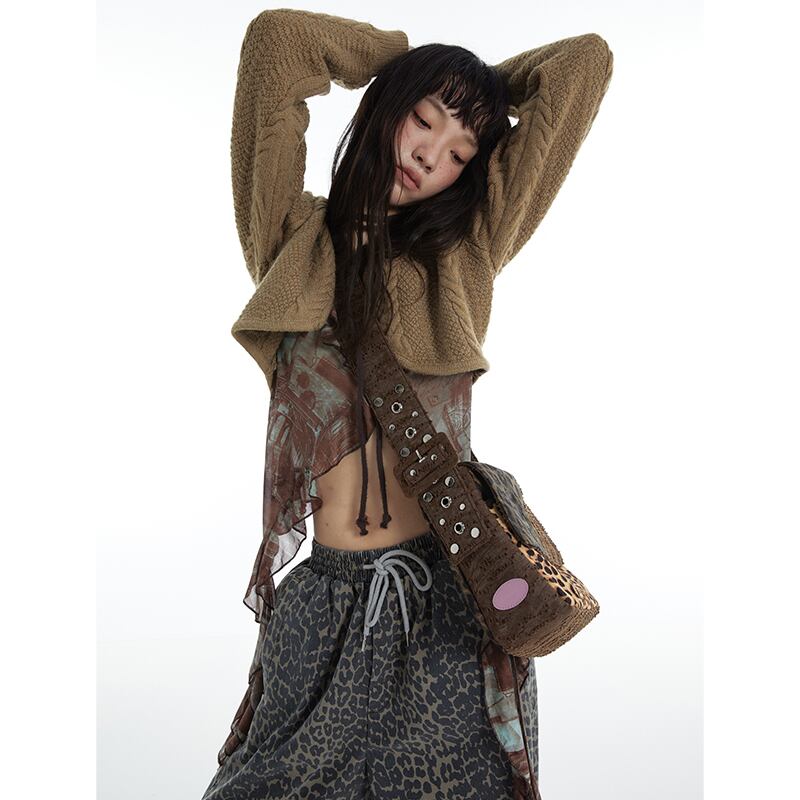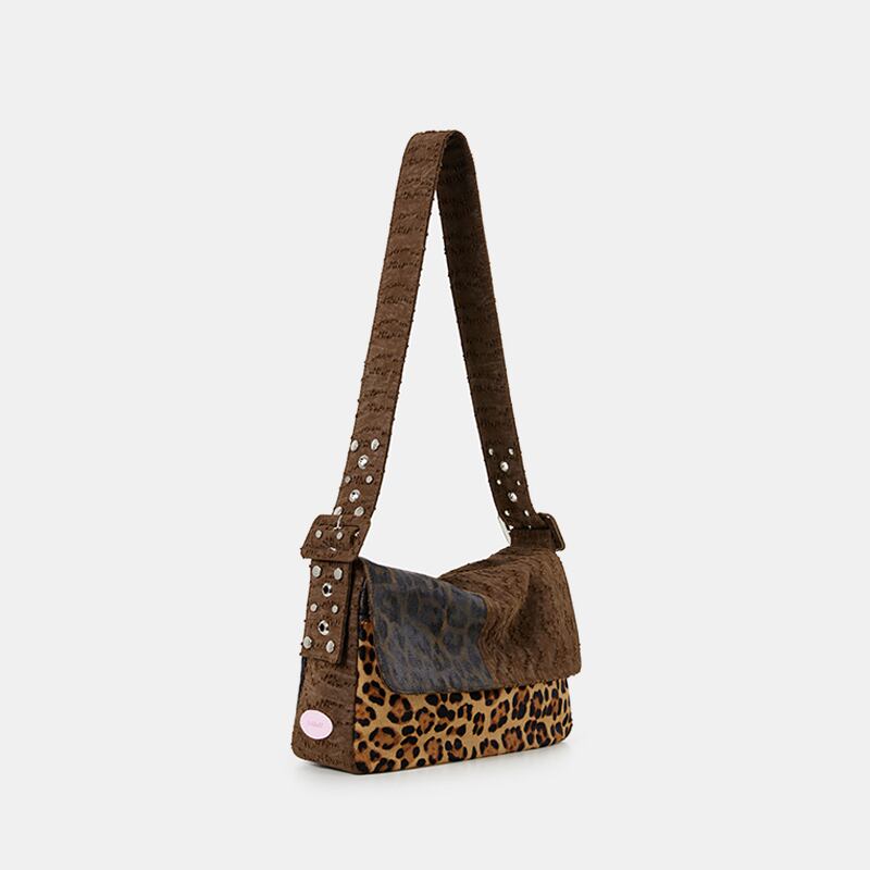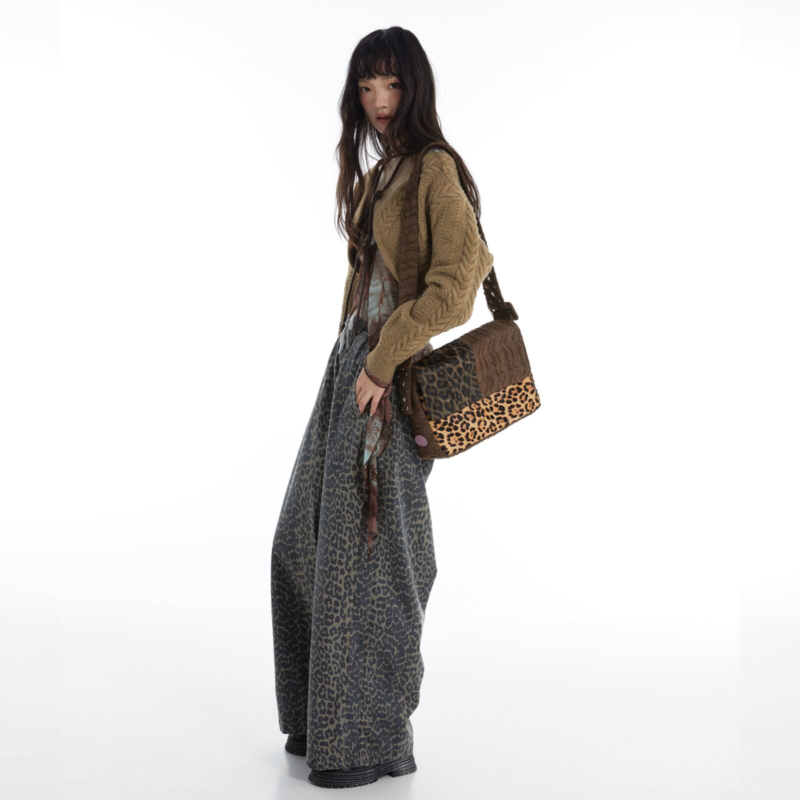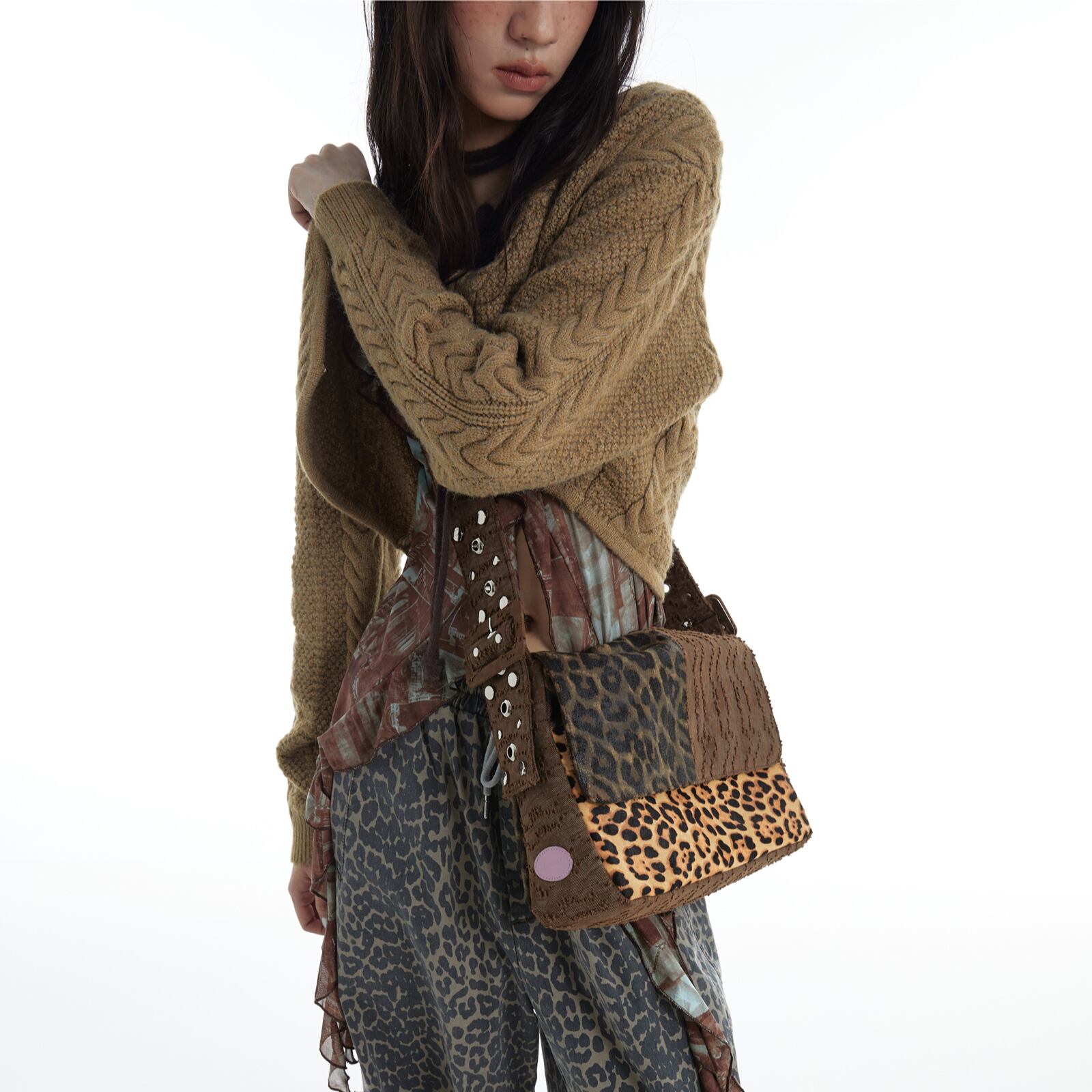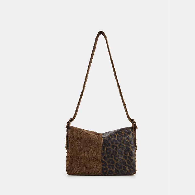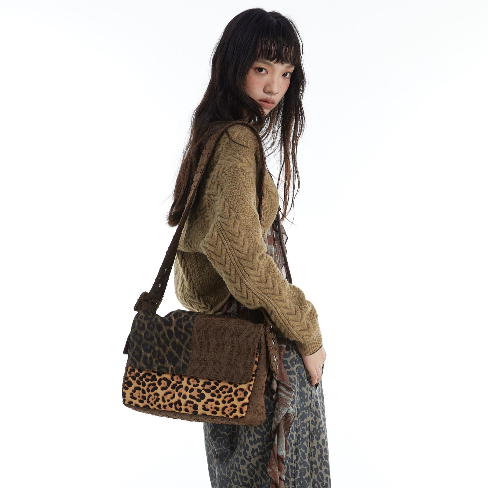 オリジナルヒョウ柄馬毛切り替えボディバッグ