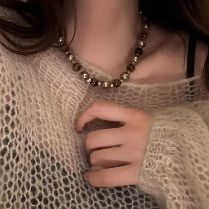 Somedayif虎目石パールのレトロネックレス