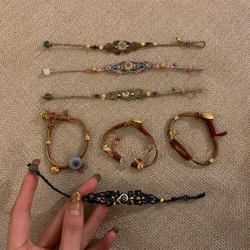 Somedayif手作り民族風編み猫目石ブレスレット
