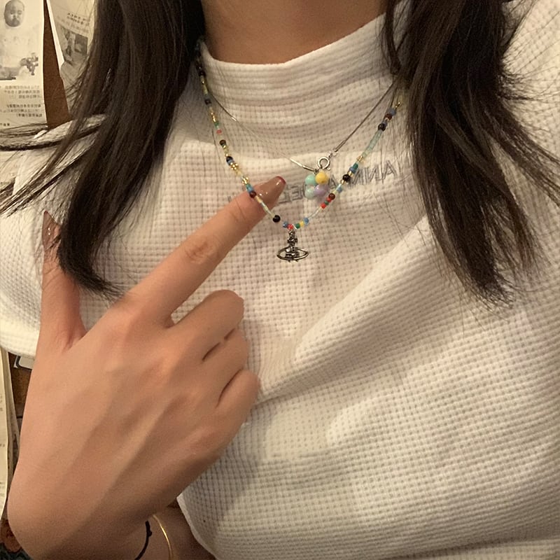 Somedayif手作り彩色な土星ビーズネックレス 2点セット