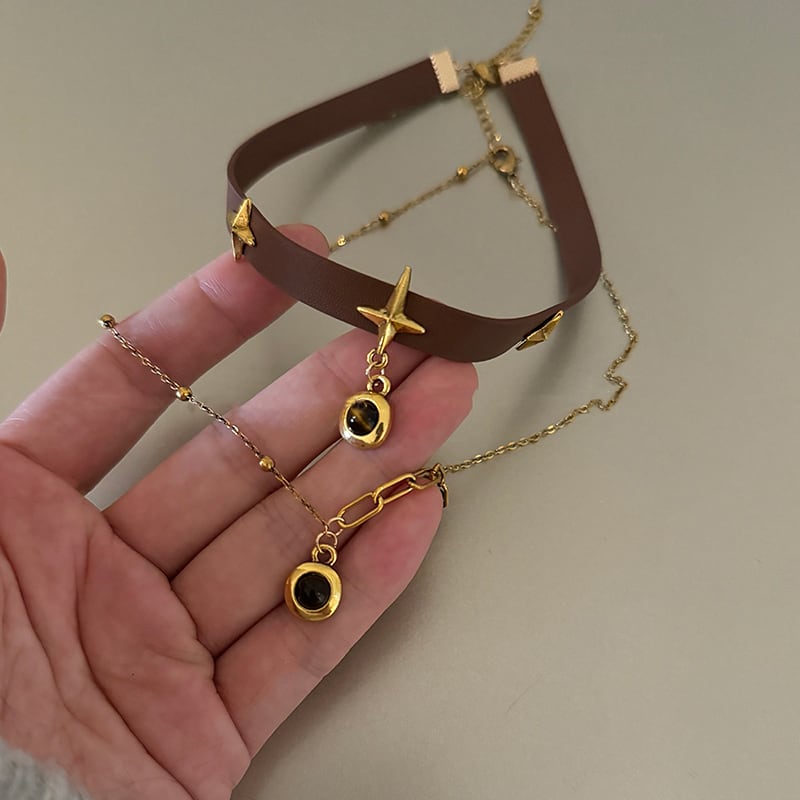 tianレトロ虎目石四芒星のネックレス 2点セット